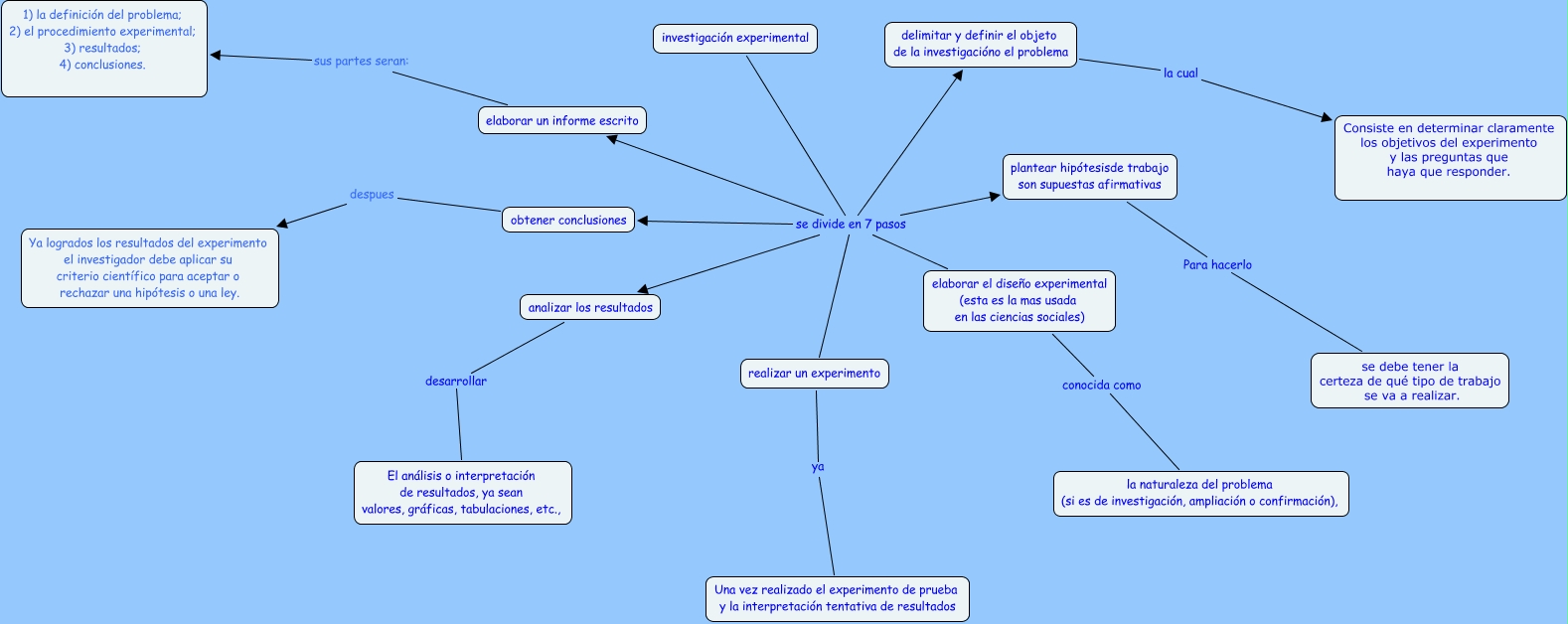 Este Cmap, tiene información relacionada con: investigacion experimental, obtener conclusiones despues Ya logrados los resultados del experimento el investigador debe aplicar su criterio científico para aceptar o rechazar una hipótesis o una ley., investigación experimental se divide en 7 pasos plantear hipótesisde trabajo son supuestas afirmativas, elaborar un informe escrito sus partes seran: 1) la definición del problema; 2) el procedimiento experimental; 3) resultados; 4) conclusiones., investigación experimental se divide en 7 pasos elaborar un informe escrito, analizar los resultados desarrollar El análisis o interpretación de resultados, ya sean valores, gráficas, tabulaciones, etc.,, investigación experimental se divide en 7 pasos realizar un experimento, plantear hipótesisde trabajo son supuestas afirmativas Para hacerlo se debe tener la certeza de qué tipo de trabajo se va a realizar., delimitar y definir el objeto de la investigacióno el problema la cual Consiste en determinar claramente los objetivos del experimento y las preguntas que haya que responder., investigación experimental se divide en 7 pasos delimitar y definir el objeto de la investigacióno el problema, investigación experimental se divide en 7 pasos obtener conclusiones, investigación experimental se divide en 7 pasos analizar los resultados, realizar un experimento ya Una vez realizado el experimento de prueba y la interpretación tentativa de resultados, investigación experimental se divide en 7 pasos elaborar el diseño experimental (esta es la mas usada en las ciencias sociales), elaborar el diseño experimental (esta es la mas usada en las ciencias sociales) conocida como la naturaleza del problema (si es de investigación, ampliación o confirmación),