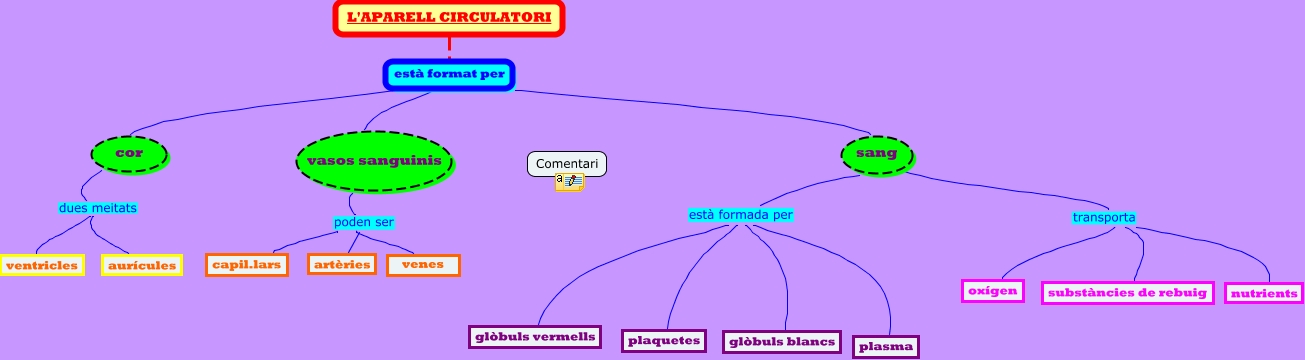 Aquest mapa conceptual conté informació relacionada amb: L'APARELL CIRCULATORI 2, vasos sanguinis poden ser venes, sang transporta substàncies de rebuig, sang transporta nutrients, cor dues meitats ventricles, vasos sanguinis poden ser artèries, L'APARELL CIRCULATORI està format per vasos sanguinis, vasos sanguinis poden ser capil.lars, sang està formada per plasma, L'APARELL CIRCULATORI està format per sang, sang transporta oxígen, sang està formada per glòbuls vermells, L'APARELL CIRCULATORI està format per cor, cor dues meitats aurícules, sang està formada per plaquetes, sang està formada per glòbuls blancs