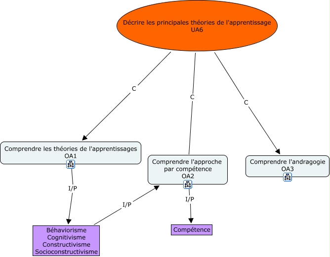 Cette carte de concepts créée avec IHMC CmapTools traite de: Principe des apprentissages, Décrire les principales théories de l'apprentissage UA6 C Comprendre les théories de l'apprentissages OA1, Comprendre les théories de l'apprentissages OA1 I/P Béhaviorisme Cognitivisme Constructivisme Socioconstructivisme, Décrire les principales théories de l'apprentissage UA6 C Comprendre l'andragogie OA3, Béhaviorisme Cognitivisme Constructivisme Socioconstructivisme I/P Comprendre l'approche par compétence OA2, Comprendre l'approche par compétence OA2 I/P Compétence, Décrire les principales théories de l'apprentissage UA6 C Comprendre l'approche par compétence OA2