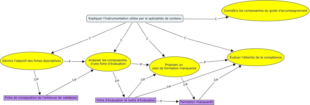 Cette carte de concepts créée avec IHMC CmapTools traite de: instrumentation, Expliquer l'instrumentation utilise par le spécialiste de contenu C Proposer un plan de formation manquante, Fiche de consignation de l'entrevue de validation I/P Analyser les composantes d'une fiche d'évaluation, Fiche d'évaluation et outils d'évaluation I/P Évaluer l'atteinte de la compétence, Expliquer l'instrumentation utilise par le spécialiste de contenu C Analyser les composantes d'une fiche d'évaluation, Décrire l'objectif des fiches descriptives I/P Fiche de consignation de l'entrevue de validation, Proposer un plan de formation manquante I/P Formation manquante, Analyser les composantes d'une fiche d'évaluation P Proposer un plan de formation manquante, Proposer un plan de formation manquante P Évaluer l'atteinte de la compétence, Formation manquante I/P Évaluer l'atteinte de la compétence, Expliquer l'instrumentation utilise par le spécialiste de contenu C Connaître les composantes du guide d'accompagnement, Expliquer l'instrumentation utilise par le spécialiste de contenu C Évaluer l'atteinte de la compétence, Analyser les composantes d'une fiche d'évaluation I/P Fiche d'évaluation et outils d'évaluation, Fiche d'évaluation et outils d'évaluation P Formation manquante, Expliquer l'instrumentation utilise par le spécialiste de contenu C Décrire l'objectif des fiches descriptives, Fiche d'évaluation et outils d'évaluation I/P Proposer un plan de formation manquante, Décrire l'objectif des fiches descriptives P Analyser les composantes d'une fiche d'évaluation