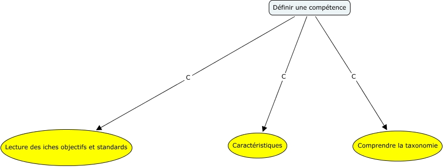 Cette carte de concepts créée avec IHMC CmapTools traite de: compétence, Définir une compétence C Lecture des iches objectifs et standards, Définir une compétence C Caractéristiques, Définir une compétence C Comprendre la taxonomie