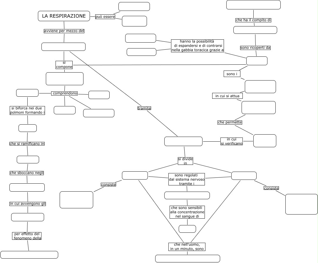 Questa Cmap, creata con IHMC CmapTools, contiene informazioni relative a: Copia di apparato respiratorio, inspirazione sono regolati dal sistema nervoso tramite i espirazione, l'apparato respiratorio si compone polmoni, inspirazione consiste nell'immissione di ossigeno, la trachea si biforca nei due polmoni formando i bronchi, la faringe comprendono la trachea, la faringe comprendono vie respiratorie o aeree, inspirazione che nell'uomo, in un minuto, sono ????, polmoni sono i l' organo più importante, inspirazione sono regolati dal sistema nervoso tramite i ????, l'apparato respiratorio tramite, la respiraziopne polmonare che permette gli scambi gassosi, polmoni sono ricoperti da ????, si divide in inspirazione, polmoni hanno la possibilità di espandersi e di contrarsi nella gabbia toracica grazie a ????, inspirazione che nell'uomo, in un minuto, sono espirazione, polmoni hanno la possibilità di espandersi e di contrarsi nella gabbia toracica grazie a ????, ???? che ha il compito di ????, gli scambi gassosi in cui si verificano, la faringe comprendono la laringe, LA RESPIRAZIONE può essere ????