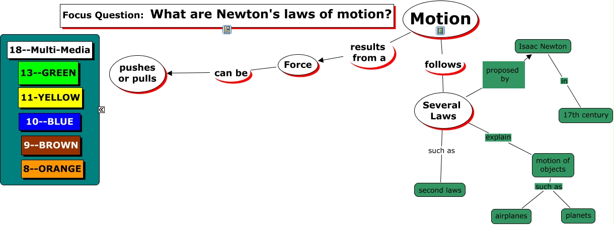 This Concept Map, created with IHMC CmapTools, has information related to: 022813-han-newton's laws1-77635, Force can be pushes or pulls, Several Laws such as second laws, Isaac Newton in 17th century, Motion results from a Force, motion of objects such as planets, motion of objects such as airplanes, Motion follows Several Laws, Several Laws explain motion of objects, Several Laws proposed by Isaac Newton