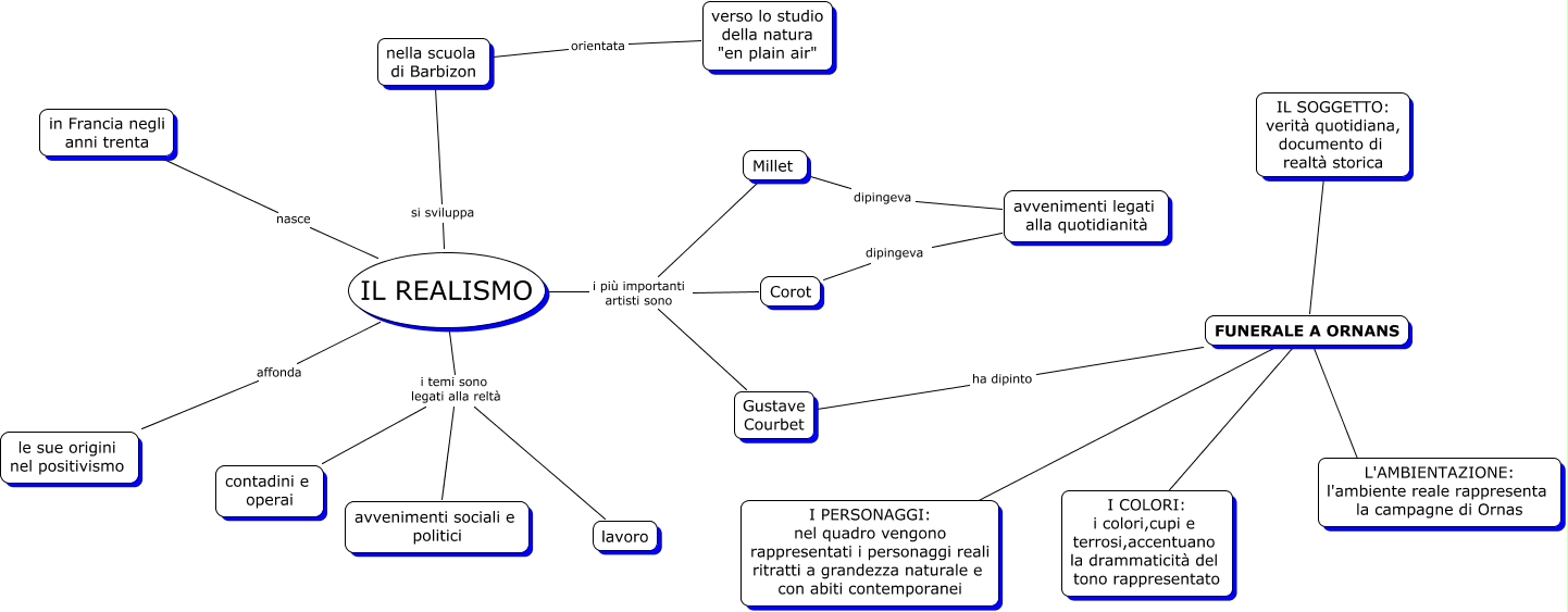 Questa Cmap, creata con IHMC CmapTools, contiene informazioni relative a: l'occhio, IL REALISMO si sviluppa nella scuola di Barbizon, Millet dipingeva avvenimenti legati alla quotidianità, IL REALISMO i temi sono legati alla reltà lavoro, FUNERALE A ORNANS ???? L'AMBIENTAZIONE: l'ambiente reale rappresenta la campagne di Ornas, IL REALISMO nasce in Francia negli anni trenta, nella scuola di Barbizon orientata verso lo studio della natura "en plain air", IL REALISMO i più importanti artisti sono Millet, IL REALISMO i più importanti artisti sono Corot, IL REALISMO i più importanti artisti sono Gustave Courbet, Corot dipingeva avvenimenti legati alla quotidianità, IL REALISMO i temi sono legati alla reltà contadini e operai, IL REALISMO i temi sono legati alla reltà avvenimenti sociali e politici, Gustave Courbet ha dipinto FUNERALE A ORNANS, FUNERALE A ORNANS ???? I PERSONAGGI: nel quadro vengono rappresentati i personaggi reali ritratti a grandezza naturale e con abiti contemporanei, IL REALISMO affonda le sue origini nel positivismo, FUNERALE A ORNANS ???? I COLORI: i colori,cupi e terrosi,accentuano la drammaticità del tono rappresentato, FUNERALE A ORNANS ???? IL SOGGETTO: verità quotidiana, documento di realtà storica