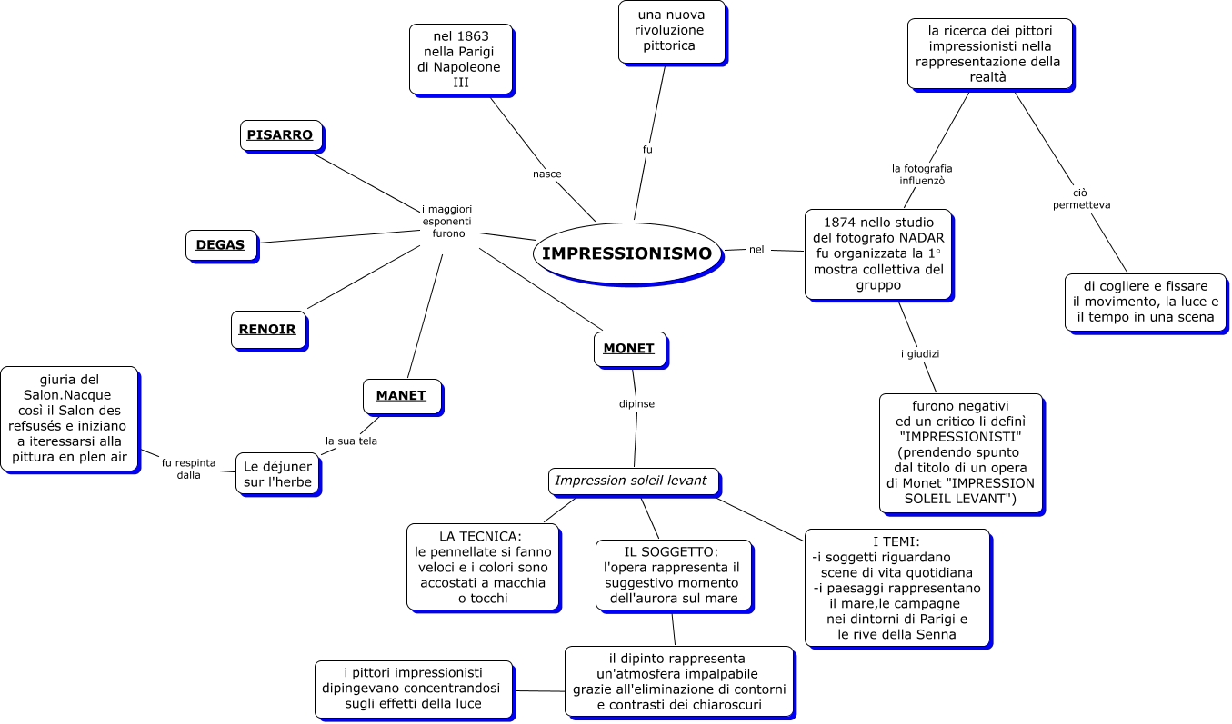 Questa Cmap, creata con IHMC CmapTools, contiene informazioni relative a: l'occhio, IMPRESSIONISMO i maggiori esponenti furono RENOIR, IMPRESSIONISMO i maggiori esponenti furono MONET, Le déjuner sur l'herbe fu respinta dalla giuria del Salon.Nacque così il Salon des refsusés e iniziano a iteressarsi alla pittura en plen air, Impression soleil levant ???? LA TECNICA: le pennellate si fanno veloci e i colori sono accostati a macchia o tocchi, Impression soleil levant ???? IL SOGGETTO: l'opera rappresenta il suggestivo momento dell'aurora sul mare, il dipinto rappresenta un'atmosfera impalpabile grazie all'eliminazione di contorni e contrasti dei chiaroscuri ???? i pittori impressionisti dipingevano concentrandosi sugli effetti della luce, Impression soleil levant ???? I TEMI: -i soggetti riguardano scene di vita quotidiana -i paesaggi rappresentano il mare,le campagne nei dintorni di Parigi e le rive della Senna, IMPRESSIONISMO fu una nuova rivoluzione pittorica, IMPRESSIONISMO nel 1874 nello studio del fotografo NADAR fu organizzata la 1° mostra collettiva del gruppo, 1874 nello studio del fotografo NADAR fu organizzata la 1° mostra collettiva del gruppo i giudizi furono negativi ed un critico li definì "IMPRESSIONISTI" (prendendo spunto dal titolo di un opera di Monet "IMPRESSION SOLEIL LEVANT"), 1874 nello studio del fotografo NADAR fu organizzata la 1° mostra collettiva del gruppo la fotografia influenzò la ricerca dei pittori impressionisti nella rappresentazione della realtà, MONET dipinse Impression soleil levant, IMPRESSIONISMO nasce nel 1863 nella Parigi di Napoleone III, IMPRESSIONISMO i maggiori esponenti furono PISARRO, IMPRESSIONISMO i maggiori esponenti furono DEGAS, IMPRESSIONISMO i maggiori esponenti furono MANET, MANET la sua tela Le déjuner sur l'herbe, la ricerca dei pittori impressionisti nella rappresentazione della realtà ciò permetteva di cogliere e fissare il movimento, la luce e il tempo in una scena, IL SOGGETTO: l'opera rappresenta il suggestivo momento dell'aurora sul mare ???? il dipinto rappresenta un'atmosfera impalpabile grazie all'eliminazione di contorni e contrasti dei chiaroscuri