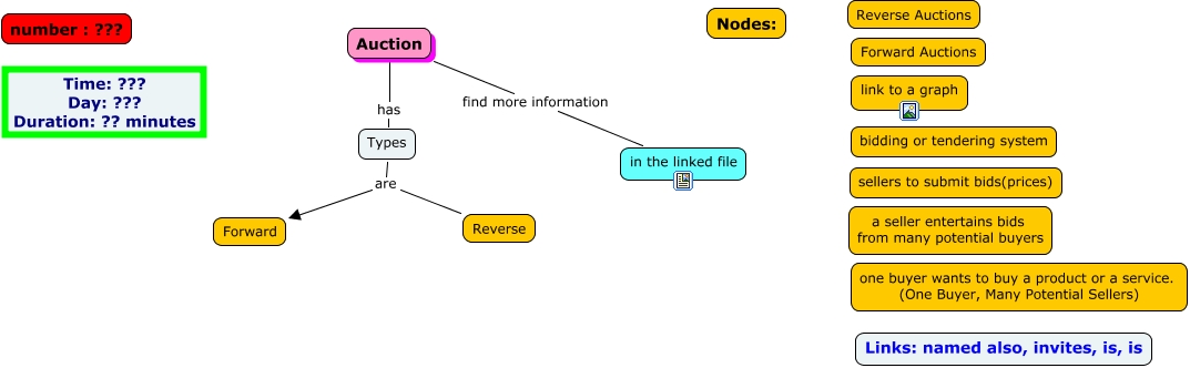 This Concept Map, created with IHMC CmapTools, has information related to: Auction, Auction has Types, Types are Reverse, Types are Forward, Auction find more information in the linked file