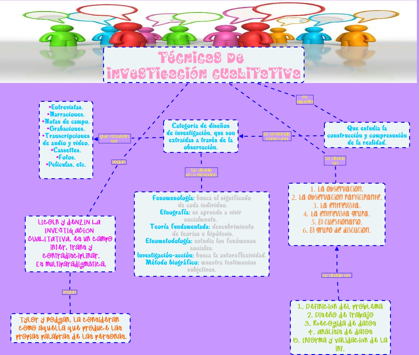 Este Cmap, tiene información relacionada con: TECNICAS DE LA INVST. CUALITATIVA, TÉCNICAS DE INVESTIGACIÓN CUALITATIVA Se divide en: 1. La observacion. 2. La observacion participante. 3. La entrevista. 4. La entrevista grupa. 5. El cuestionario. 6. El grupo de discucion., Categoria de diseños de investigación, que son extraidas a través de la observación. Que resultan ser •Entrevistas. •Narraciones. •Notas de campo. •Grabaciones. •Transcripciones de audio y video. •Cassettes. •Fotos. •Peliculas, etc., TÉCNICAS DE INVESTIGACIÓN CUALITATIVA es aquella Que estudia la construcción y compresnsión de la realidad., lIcoln y deNZIN LA INVESTIGACIÓN CUALITATIVA, es un campo inter, trans y contradisciplinar. Es multiparadigmática, segun Tylor y Bodgan, la consideran como aquella que produce las propias palabras de las personas., 1. Definición del problema 2. Diseño de trabajo 3. Recogida de datos 4. Análisis de datos 5. Informa y validación de la inf. Se divide en 1. La observacion. 2. La observacion participante. 3. La entrevista. 4. La entrevista grupa. 5. El cuestionario. 6. El grupo de discucion., Categoria de diseños de investigación, que son extraidas a través de la observación. Se divide en 6 métodos: Fenomenología: busca el significado de cada individuo. Etnografía: se aprende a vivir socialmente. Teoría fundamentada: descubrimiento de teorias e hipótesis. Etnometodología: estudia los fenómenos sociales. Investigación-acción: busca la autoreflexividad. Método biográfico: muestra testimonios subjetivos., Que estudia la construcción y compresnsión de la realidad. se entiende como una Categoria de diseños de investigación, que son extraidas a través de la observación., TÉCNICAS DE INVESTIGACIÓN CUALITATIVA segun lIcoln y deNZIN LA INVESTIGACIÓN CUALITATIVA, es un campo inter, trans y contradisciplinar. Es multiparadigmática,