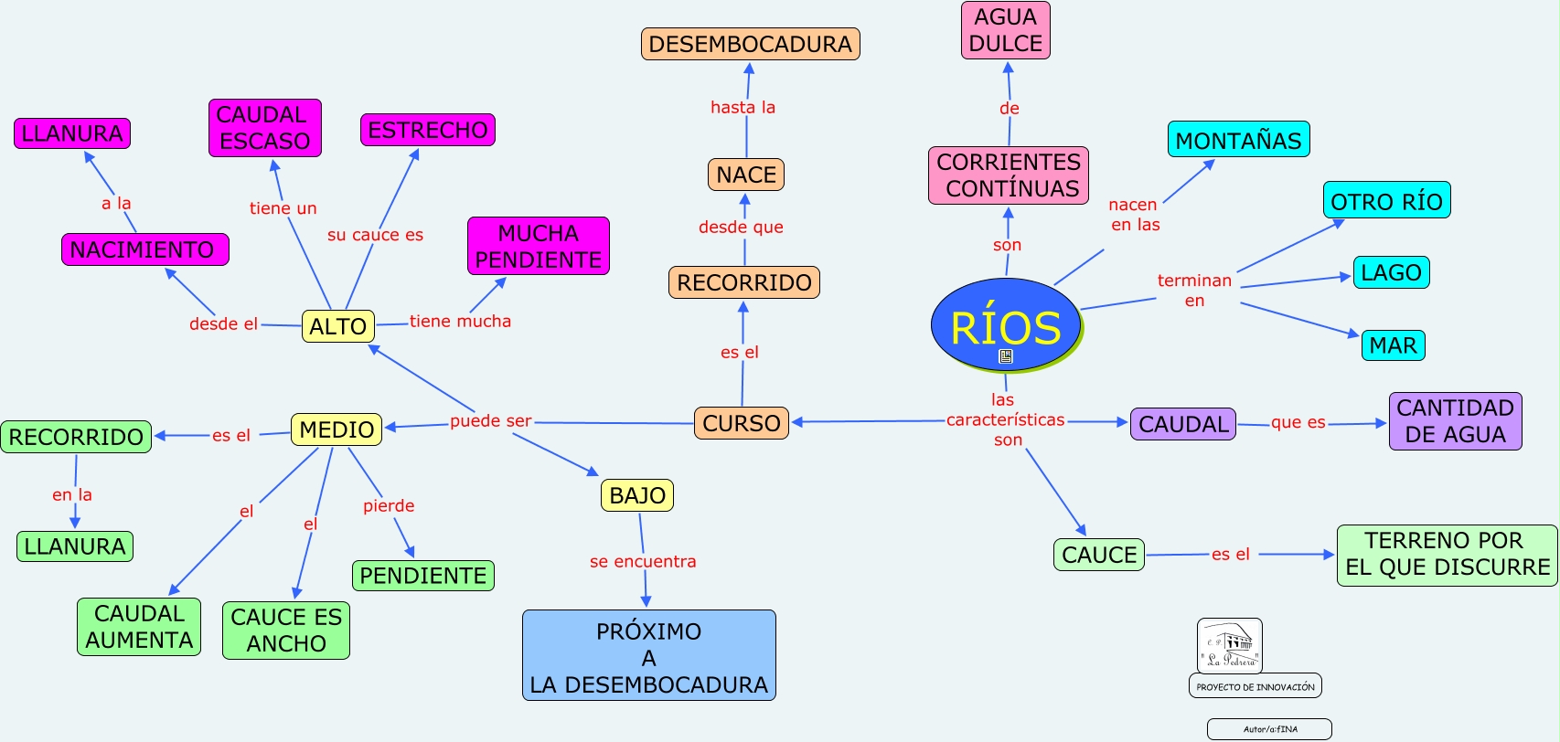 Este Cmap, tiene información relacionada con: RIOS, RÍOS son CORRIENTES CONTÍNUAS, ALTO tiene mucha MUCHA PENDIENTE, RÍOS terminan en OTRO RÍO, CURSO es el RECORRIDO, RÍOS terminan en MAR, RECORRIDO en la LLANURA, MEDIO el CAUCE ES ANCHO, ALTO su cauce es ESTRECHO, CORRIENTES CONTÍNUAS de AGUA DULCE, CAUDAL que es CANTIDAD DE AGUA, RÍOS nacen en las MONTAÑAS, RÍOS las características son CAUCE, ALTO desde el NACIMIENTO, CAUCE es el TERRENO POR EL QUE DISCURRE, RÍOS las características son CAUDAL, CURSO puede ser BAJO, NACE hasta la DESEMBOCADURA, RÍOS terminan en LAGO, BAJO se encuentra PRÓXIMO A LA DESEMBOCADURA, ALTO tiene un CAUDAL ESCASO