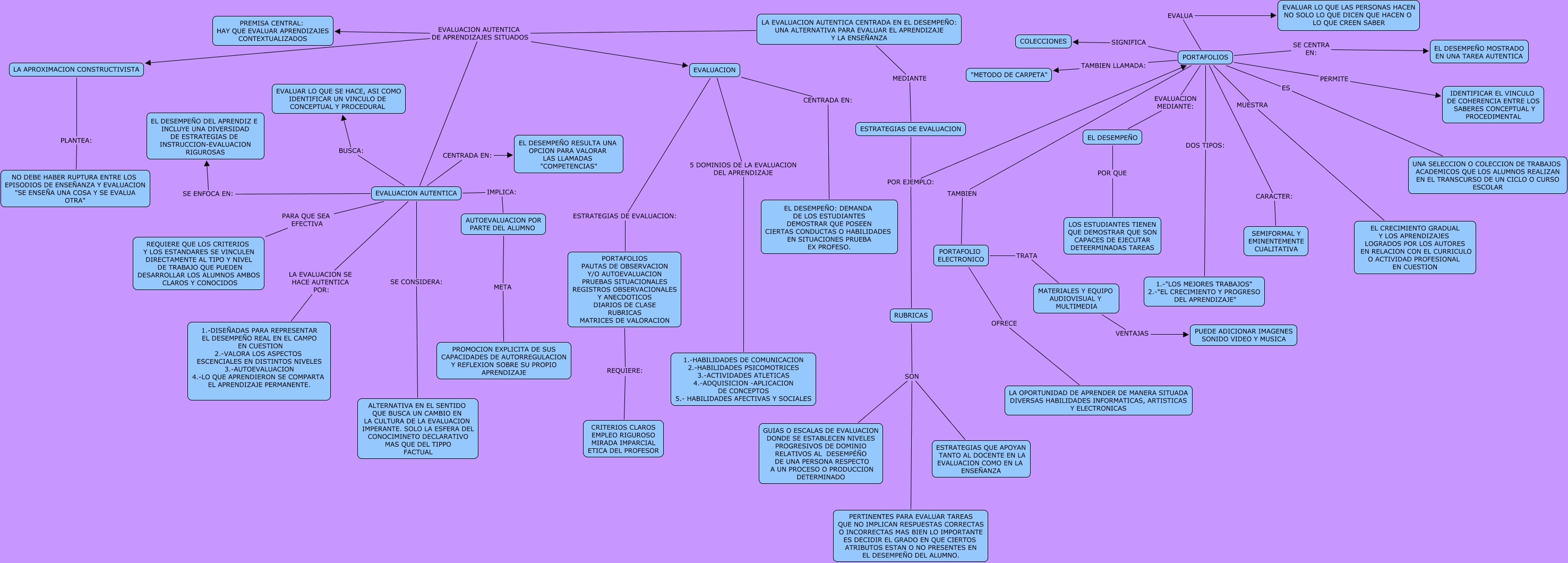 Este Cmap, tiene información relacionada con: CAPITULO 5, PORTAFOLIOS MUESTRA EL CRECIMIENTO GRADUAL Y LOS APRENDIZAJES LOGRADOS POR LOS AUTORES EN RELACION CON EL CURRICULO O ACTIVIDAD PROFESIONAL EN CUESTION, ESTRATEGIAS DE EVALUACION POR EJEMPLO: PORTAFOLIOS, LA EVALUACION AUTENTICA CENTRADA EN EL DESEMPEÑO: UNA ALTERNATIVA PARA EVALUAR EL APRENDIZAJE Y LA ENSEÑANZA EVALUACION AUTENTICA DE APRENDIZAJES SITUADOS EVALUACION AUTENTICA, EVALUACION 5 DOMINIOS DE LA EVALUACION DEL APRENDIZAJE 1.-HABILIDADES DE COMUNICACION 2.-HABILIDADES PSICOMOTRICES 3.-ACTIVIDADES ATLETICAS 4.-ADQUISICION -APLICACION DE CONCEPTOS 5.- HABILIDADES AFECTIVAS Y SOCIALES, EVALUACION AUTENTICA SE CONSIDERA: ALTERNATIVA EN EL SENTIDO QUE BUSCA UN CAMBIO EN LA CULTURA DE LA EVALUACION IMPERANTE. SOLO LA ESFERA DEL CONOCIMINETO DECLARATIVO MAS QUE DEL TIPPO FACTUAL, PORTAFOLIOS ES UNA SELECCION O COLECCION DE TRABAJOS ACADEMICOS QUE LOS ALUMNOS REALIZAN EN EL TRANSCURSO DE UN CICLO O CURSO ESCOLAR, EVALUACION ESTRATEGIAS DE EVALUACION: PORTAFOLIOS PAUTAS DE OBSERVACION Y/O AUTOEVALUACION PRUEBAS SITUACIONALES REGISTROS OBSERVACIONALES Y ANECDOTICOS DIARIOS DE CLASE RUBRICAS MATRICES DE VALORACION, RUBRICAS SON ESTRATEGIAS QUE APOYAN TANTO AL DOCENTE EN LA EVALUACION COMO EN LA ENSEÑANZA, LA EVALUACION AUTENTICA CENTRADA EN EL DESEMPEÑO: UNA ALTERNATIVA PARA EVALUAR EL APRENDIZAJE Y LA ENSEÑANZA MEDIANTE ESTRATEGIAS DE EVALUACION, PORTAFOLIO ELECTRONICO TRATA MATERIALES Y EQUIPO AUDIOVISUAL Y MULTIMEDIA, PORTAFOLIOS EVALUACION MEDIANTE: EL DESEMPEÑO, PORTAFOLIOS SIGNIFICA COLECCIONES, EVALUACION AUTENTICA IMPLICA: AUTOEVALUACION POR PARTE DEL ALUMNO, PORTAFOLIO ELECTRONICO OFRECE LA OPORTUNIDAD DE APRENDER DE MANERA SITUADA DIVERSAS HABILIDADES INFORMATICAS, ARTISTICAS Y ELECTRONICAS, EVALUACION AUTENTICA LA EVALUACION SE HACE AUTENTICA POR: 1.-DISEÑADAS PARA REPRESENTAR EL DESEMPEÑO REAL EN EL CAMPO EN CUESTION 2.-VALORA LOS ASPECTOS ESCENCIALES EN DISTINTOS NIVELES 3.-AUTOEVALUACION 4.-LO QUE APRENDIERON SE COMPARTA EL APRENDIZAJE PERMANENTE., PORTAFOLIOS DOS TIPOS: 1.-"LOS MEJORES TRABAJOS" 2.-"EL CRECIMIENTO Y PROGRESO DEL APRENDIZAJE", EVALUACION CENTRADA EN: EL DESEMPEÑO: DEMANDA DE LOS ESTUDIANTES DEMOSTRAR QUE POSEEN CIERTAS CONDUCTAS O HABILIDADES EN SITUACIONES PRUEBA EX PROFESO., LA EVALUACION AUTENTICA CENTRADA EN EL DESEMPEÑO: UNA ALTERNATIVA PARA EVALUAR EL APRENDIZAJE Y LA ENSEÑANZA EVALUACION AUTENTICA DE APRENDIZAJES SITUADOS PREMISA CENTRAL: HAY QUE EVALUAR APRENDIZAJES CONTEXTUALIZADOS, PORTAFOLIOS PAUTAS DE OBSERVACION Y/O AUTOEVALUACION PRUEBAS SITUACIONALES REGISTROS OBSERVACIONALES Y ANECDOTICOS DIARIOS DE CLASE RUBRICAS MATRICES DE VALORACION REQUIERE: CRITERIOS CLAROS EMPLEO RIGUROSO MIRADA IMPARCIAL ETICA DEL PROFESOR, EL DESEMPEÑO POR QUE LOS ESTUDIANTES TIENEN QUE DEMOSTRAR QUE SON CAPACES DE EJECUTAR DETEERMINADAS TAREAS