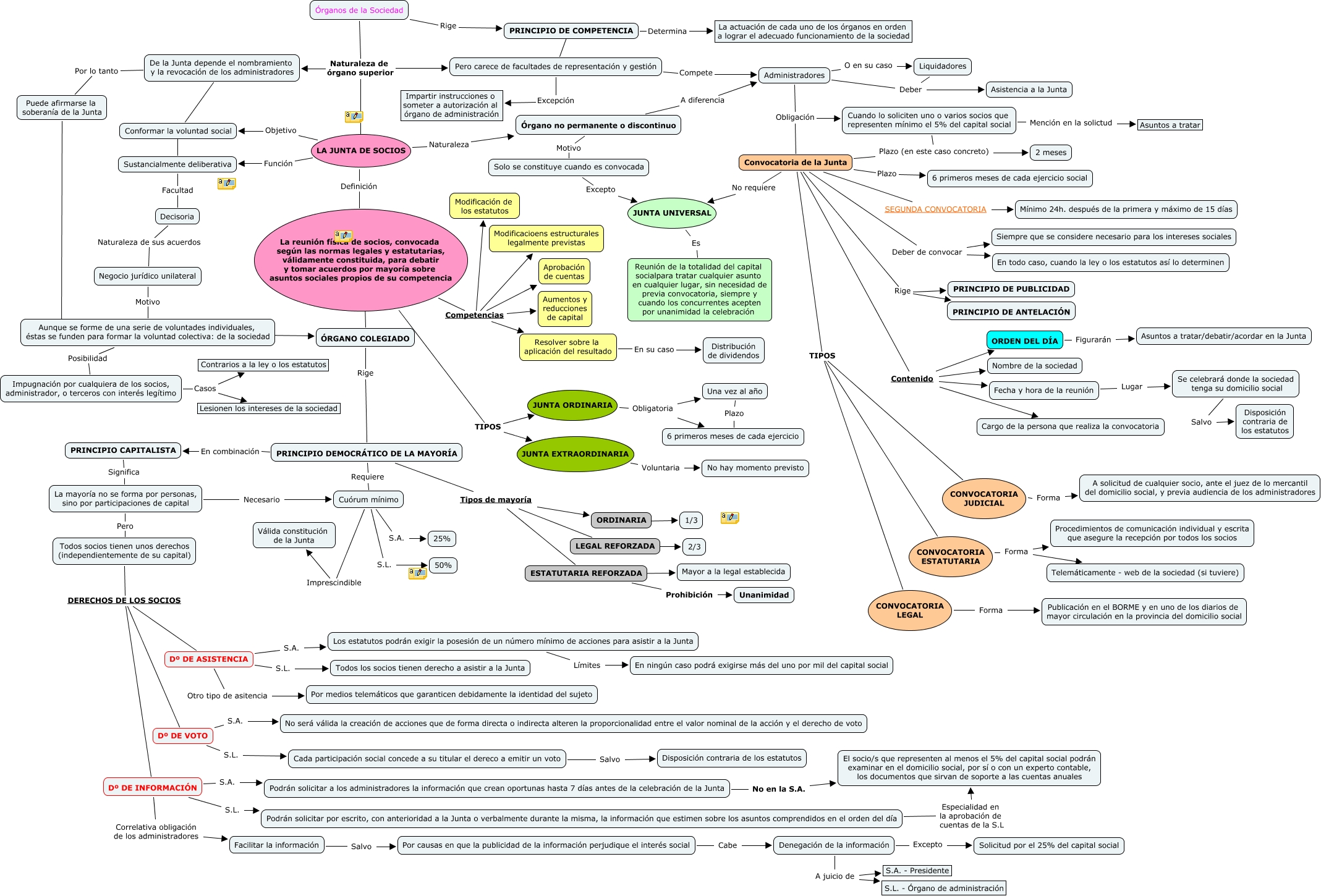 Este Cmap, tiene información relacionada con: Escenario 4, Administradores Obligación Convocatoria de la Junta, JUNTA ORDINARIA Obligatoria 6 primeros meses de cada ejercicio, PRINCIPIO DE COMPETENCIA Determina La actuación de cada uno de los órganos en orden a lograr el adecuado funcionamiento de la sociedad, Convocatoria de la Junta Contenido Fecha y hora de la reunión, Cada participación social concede a su titular el dereco a emitir un voto Salvo Disposición contraria de los estatutos, Fecha y hora de la reunión Lugar Se celebrará donde la sociedad tenga su domicilio social, Convocatoria de la Junta TIPOS CONVOCATORIA LEGAL, Administradores Deber Asistencia a la Junta, De la Junta depende el nombramiento y la revocación de los administradores Por lo tanto Puede afirmarse la soberanía de la Junta, LA JUNTA DE SOCIOS Definición La reunión física de socios, convocada según las normas legales y estatutarias, válidamente constituida, para debatir y tomar acuerdos por mayoría sobre asuntos sociales propios de su competencia, Negocio jurídico unilateral Motivo Aunque se forme de una serie de voluntades individuales, éstas se funden para formar la voluntad colectiva: de la sociedad, Órganos de la Sociedad Rige PRINCIPIO DE COMPETENCIA, Solo se constituye cuando es convocada Excepto JUNTA UNIVERSAL, La reunión física de socios, convocada según las normas legales y estatutarias, válidamente constituida, para debatir y tomar acuerdos por mayoría sobre asuntos sociales propios de su competencia Competencias Resolver sobre la aplicación del resultado, Una vez al año Plazo 6 primeros meses de cada ejercicio, Resolver sobre la aplicación del resultado En su caso Distribución de dividendos, Convocatoria de la Junta Deber de convocar En todo caso, cuando la ley o los estatutos así lo determinen, Impugnación por cualquiera de los socios, administrador, o terceros con interés legítimo Casos Lesionen los intereses de la sociedad, PRINCIPIO CAPITALISTA Significa La mayoría no se forma por personas, sino por participaciones de capital, Cuórum mínimo Imprescindible Válida constitución de la Junta
