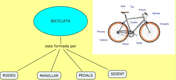 Este Cmap, tiene información relacionada con: BICICLETA, BICICLETA esta formada per RODES, BICICLETA esta formada per MANILLAR, BICICLETA esta formada per SEIENT, BICICLETA esta formada per PEDALS