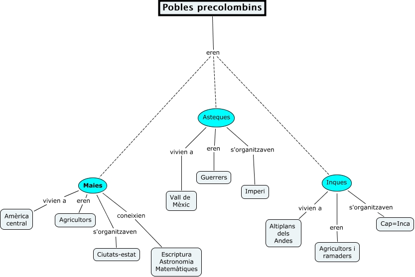 Este Cmap, tiene información relacionada con: Pobles precolombins, Inques s'organitzaven Cap=Inca, Pobles precolombins eren Asteques, Inques vivien a Altiplans dels Andes, Maies vivien a Amèrica central, Maies coneixien Escriptura Astronomia Matemàtiques, Asteques s'organitzaven Imperi, Pobles precolombins eren Inques, Maies eren Agricultors, Inques eren Agricultors i ramaders, Pobles precolombins eren Maies, Asteques eren Guerrers, Asteques vivien a Vall de Mèxic, Maies s'organitzaven Ciutats-estat