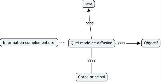 Cette carte de concepts créée avec IHMC CmapTools traite de: Ress mode, Quel mode de diffusion ???? Information complémentaire, Quel mode de diffusion ???? Objectif, Quel mode de diffusion ???? Titre, Quel mode de diffusion ???? Corps principal