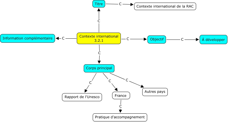Cette carte de concepts créée avec IHMC CmapTools traite de: Ress int, Objectif C À développer, Corps principal C Autres pays, Contexte international 3.2.1 C Information complémentaire, Contexte international 3.2.1 C Corps principal, France C Pratique d'accompagnement, Corps principal C Rapport de l'Unesco, Contexte international 3.2.1 C Titre, Corps principal C France, Titre C Contexte international de la RAC, Contexte international 3.2.1 C Objectif