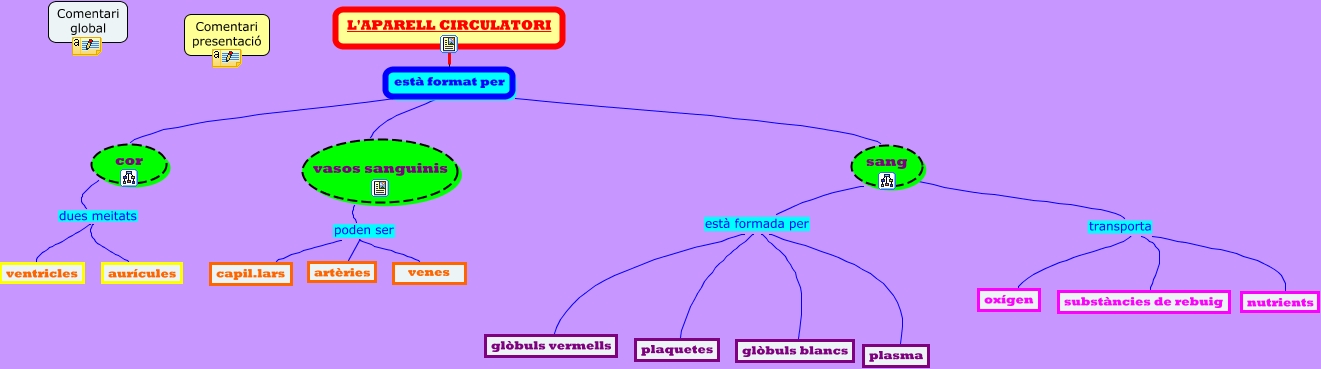 Aquest mapa conceptual conté informació relacionada amb: aparell 5 presentacio, sang transporta substàncies de rebuig, vasos sanguinis poden ser venes, L'APARELL CIRCULATORI està format per sang, sang transporta nutrients, cor dues meitats ventricles, L'APARELL CIRCULATORI està format per cor, L'APARELL CIRCULATORI està format per vasos sanguinis, vasos sanguinis poden ser artèries, vasos sanguinis poden ser capil.lars, L'APARELL CIRCULATORI està format per vasos sanguinis, sang està formada per plasma, sang transporta oxígen, L'APARELL CIRCULATORI està format per sang, cor dues meitats aurícules, L'APARELL CIRCULATORI està format per cor, sang està formada per glòbuls vermells, sang està formada per glòbuls blancs, sang està formada per plaquetes