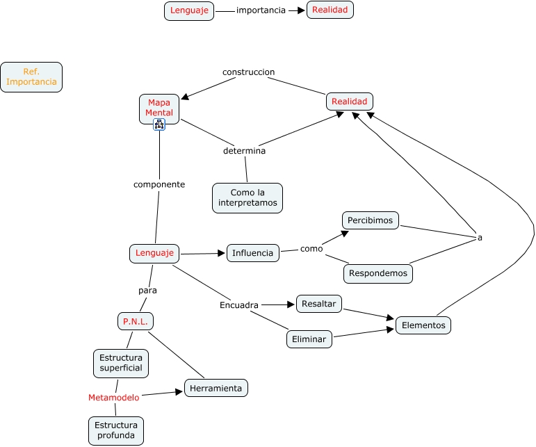 Este Cmap, tiene información relacionada con: Lenguaje Realidad Introduccion, Elementos Realidad, Respondemos a Realidad, Lenguaje Encuadra Eliminar, Resaltar Elementos, Mapa Mental determina Como la interpretamos, Lenguaje importancia Realidad, Lenguaje para P.N.L., Percibimos a Realidad, Influencia como Percibimos, Eliminar Elementos, Mapa Mental determina Realidad, P.N.L. Herramienta, Estructura superficial Metamodelo Herramienta, Estructura superficial Metamodelo Estructura profunda, Lenguaje Influencia, Influencia como Respondemos, Realidad construccion Mapa Mental, Mapa Mental componente Lenguaje, Lenguaje Encuadra Resaltar, P.N.L. Estructura superficial