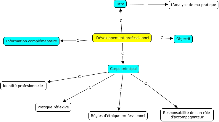 Cette carte de concepts créée avec IHMC CmapTools traite de: ressep, Développement professionnel C Titre, Développement professionnel C Corps principal, Développement professionnel C Objectif, Titre C L'analyse de ma pratique, Corps principal C Responsabilité de son rôle d'accompagnateur, Corps principal C Pratique réflexive, Corps principal C Règles d'éthique professionnel, Développement professionnel C Information complémentaire, Corps principal C Identité profesionnelle