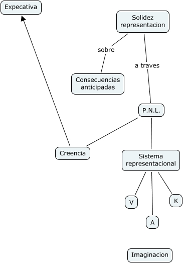 Este Cmap, tiene información relacionada con: Expectativa Representacion, P.N.L. Sistema representacional, Sistema representacional K, Sistema representacional V, Sistema representacional A, P.N.L. Creencia, Solidez representacion a traves P.N.L., Solidez representacion sobre Consecuencias anticipadas, Creencia Expecativa