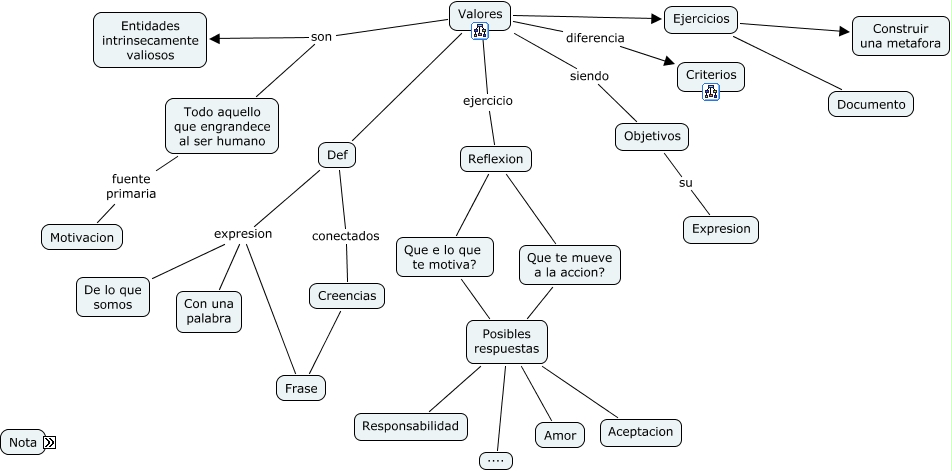 Este Cmap, tiene información relacionada con: valores, Ejercicios Documento, Que e lo que te motiva? Posibles respuestas, Valores siendo Objetivos, Valores son Entidades intrinsecamente valiosos, Que te mueve a la accion? Posibles respuestas, Valores Def, Posibles respuestas Amor, Posibles respuestas Aceptacion, Valores diferencia Criterios, Valores son Todo aquello que engrandece al ser humano, Def expresion De lo que somos, Creencias Frase, Def conectados Creencias, Posibles respuestas ...., Valores ejercicio Reflexion, Valores Ejercicios, Todo aquello que engrandece al ser humano fuente primaria Motivacion, Def expresion Frase, Reflexion Que te mueve a la accion?, Posibles respuestas Responsabilidad