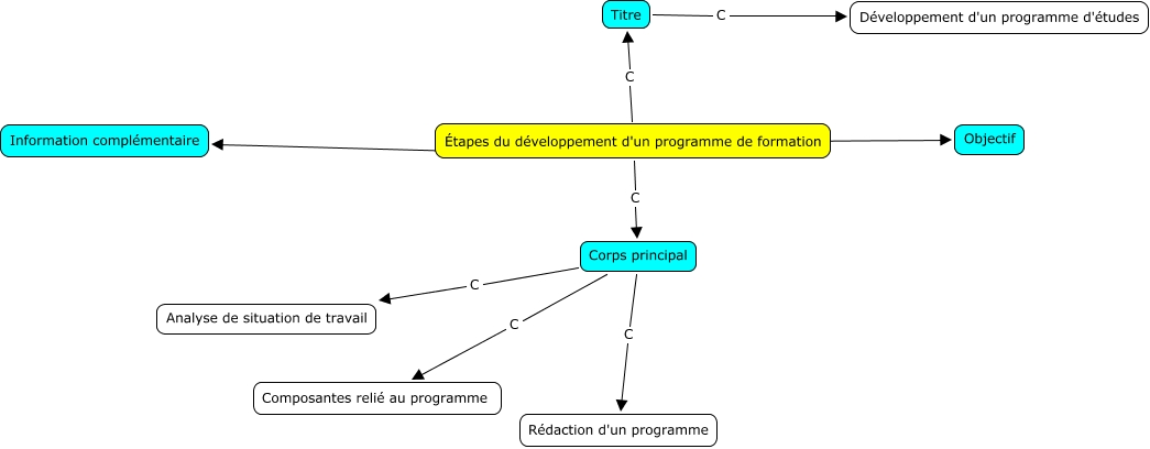 Cette carte de concepts créée avec IHMC CmapTools traite de: ressdevprogramme, Corps principal C Rédaction d'un programme, Étapes du développement d'un programme de formation C Titre, Titre C Développement d'un programme d'études, Corps principal C Analyse de situation de travail, Corps principal C Composantes relié au programme, Étapes du développement d'un programme de formation C Information complémentaire, Étapes du développement d'un programme de formation C Corps principal, Étapes du développement d'un programme de formation C Objectif