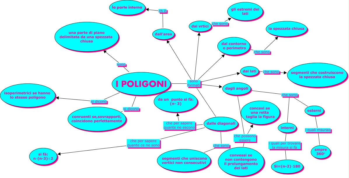 Questa Cmap, creata con IHMC CmapTools, contiene informazioni relative a: Senza titolo 1, I POLIGONI sono formati dagli angoli, dall'area ch è la parte interna, dai vrtici che sono gli estremi dei lati, I POLIGONI sono formati dai vrtici, I POLIGONI sono formati dalle diagonali, I POLIGONI si dicono isoperimetrici se hanno lo stesso poligono, esterni i quali msurao smpre 360°, dagli angoli che sono interni, dagli angoli che sono esterni, dalle diagonali che per sapere quante ne escono da un punto si fà: (n- 3), dagli angoli che possono essere convessi se non contengono il prolungamento dei lati, dalle diagonali che sono segmenti che uniscono vertici non consecutivi, dalle diagonali che per sapere quante ce ne sono si fà: n⋅(n-3)÷2, I POLIGONI sono una parte di piano delimitata da una spezzata chiusa, I POLIGONI si dicono conruenti se,sovrapporti, coincidono perfettamente, dai lati che sono segmenti che costruiscono la spezzata chiusa, interni i quali per trovare la misura si fà Si=(n-2)⋅180, I POLIGONI sono formati dai lati, I POLIGONI sono formati dal contorno o perimetro, dagli angoli che possono essere concavi se una retta taglia la figura
