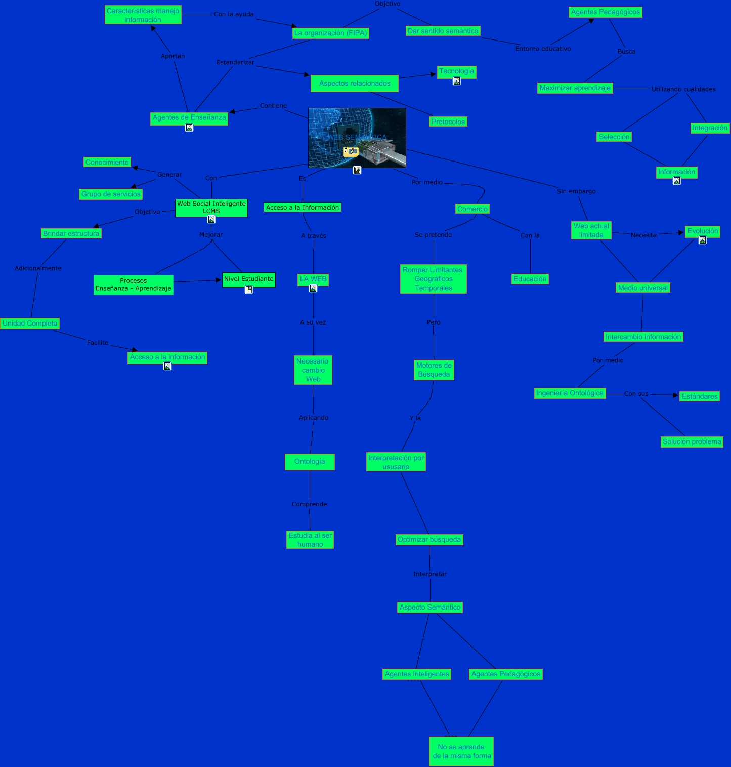 Este Cmap, tiene información relacionada con: WEB SEMANTICA MAPA CONCEPTUAL.cmap.cmap, Aspecto Semántico ???? Agentes Inteligentes, Aspectos relacionados ???? Protocolos, Motores de Búsqueda Y la Interpretación por ususario, Ingeniería Ontológica Con sus Solución problema, Web actual limitada ???? Medio universal, Comercio Se pretende Romper Límitantes Geográficos Temporales, Web Social Inteligente LCMS Objetivo Brindar estructura, WEB SEMÁNTICA Sin embargo Web actual limitada, LA WEB A su vez Necesario cambio Web, Optimizar búsqueda Interpretar Aspecto Semántico, Información ???? Selección, WEB SEMÁNTICA Contiene Agentes de Enseñanza, Maximizar aprendizaje Utilizando cualidades Selección, La organización (FIPA) Objetivo Dar sentido semántico, Agentes Inteligentes ???? No se aprende de la misma forma, WEB SEMÁNTICA Es Acceso a la Información, Comercio Con la Educación, Web Social Inteligente LCMS Generar Grupo de servicios, Agentes Pedagógicos ???? No se aprende de la misma forma, Brindar estructura Adicionalmente Unidad Completa