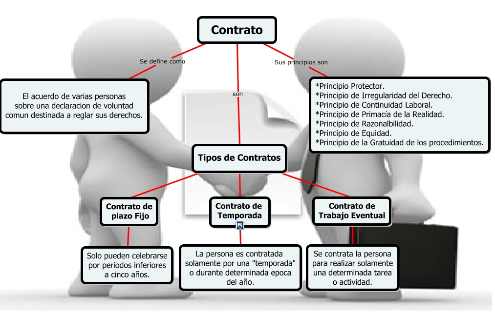 Este Cmap, tiene información relacionada con: Contrato!.cmap, Tipos de Contratos Contrato de Trabajo Eventual, Contrato de Temporada La persona es contratada solamente por una "temporada" o durante determinada epoca del año., Contrato de plazo Fijo Solo pueden celebrarse por periodos inferiores a cinco años., Contrato de Trabajo Eventual Se contrata la persona para realizar solamente una determinada tarea o actividad., Tipos de Contratos Contrato de plazo Fijo, Contrato Se define como El acuerdo de varias personas sobre una declaracion de voluntad comun destinada a reglar sus derechos., Contrato son Tipos de Contratos, Contrato Sus principios son *Principio Protector. *Principio de Irregularidad del Derecho. *Principio de Continuidad Laboral. *Principio de Primacía de la Realidad. *Principio de Razonalbilidad. *Principio de Equidad. *Principio de la Gratuidad de los procedimientos., Tipos de Contratos Contrato de Temporada