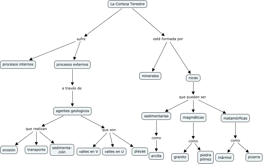 Este Cmap, tiene información relacionada con: la corteza terrestre, La Corteza Terestre sufre procesos internos, magmáticas como piedra pómez, agentes geologicos que realizan sedimenta- ción, matamórficas como mármol, rocas que pueden ser sedimentarias, La Corteza Terestre sufre procesos externos, agentes geologicos que realizan erosión, magmáticas como granito, La Corteza Terestre está formada por rocas, agentes geologicos que son valles en U, rocas que pueden ser matamórficas, agentes geologicos que son valles en V, agentes geologicos que son playas, agentes geologicos que realizan transporte, La Corteza Terestre está formada por minerales, rocas que pueden ser magmáticas, matamórficas como pizarra, sedimentarias como arcilla, procesos externos a través de agentes geologicos
