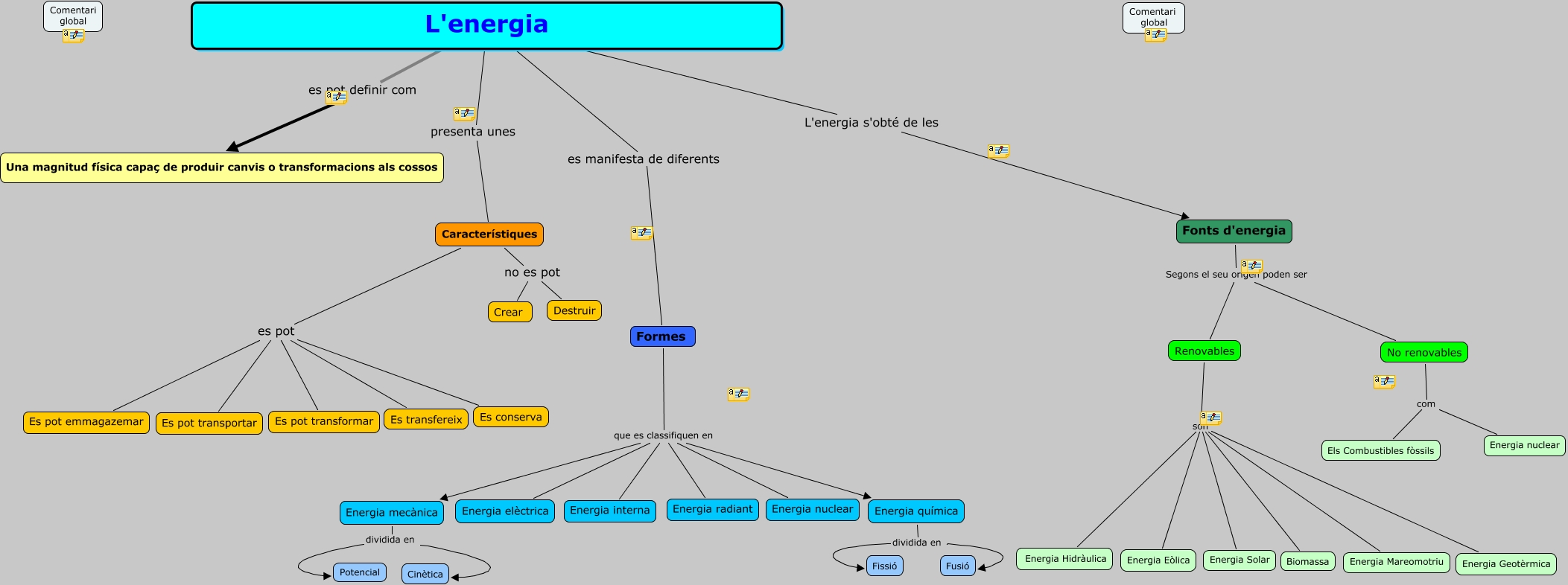 Aquest mapa conceptual conté informació relacionada amb: mapa activitat 2, Característiques es pot Es pot transformar, Formes que es classifiquen en Energia interna, Renovables son Biomassa, Renovables son Energia Hidràulica, Característiques no es pot Destruir, L'energia es manifesta de diferents Formes, Renovables son Energia Solar, Característiques es pot Es conserva, Renovables son Energia Geotèrmica, L'energia es pot definir com Una magnitud física capaç de produir canvis o transformacions als cossos, Renovables son Energia Eòlica, Energia química dividida en Fissió, Formes que es classifiquen en Energia nuclear, No renovables com Els Combustibles fòssils, Característiques es pot Es pot emmagazemar, Característiques es pot Es pot transportar, L'energia L'energia s'obté de les Fonts d'energia, L'energia presenta unes Característiques, Característiques no es pot Crear, Formes que es classifiquen en Energia elèctrica