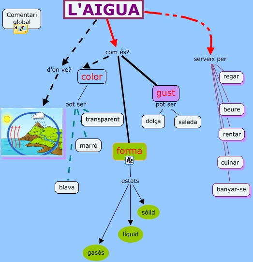 Aquest mapa conceptual conté informació relacionada amb: copia_aigua_2, L'AIGUA serveix per rentar, L'AIGUA com és? forma, L'AIGUA com és? gust, color pot ser transparent, L'AIGUA serveix per banyar-se, L'AIGUA serveix per beure, L'AIGUA d'on ve?, color pot ser marró, L'AIGUA serveix per regar, L'AIGUA serveix per cuinar, gust pot ser salada, forma estats sòlid, forma estats gasós, gust pot ser dolça, color pot ser blava, L'AIGUA com és? color, forma estats líquid