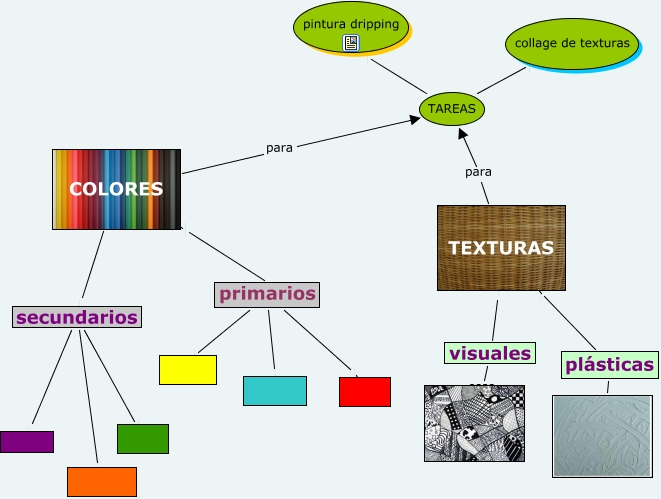 Este Cmap, tiene información relacionada con: Mundo visual y plástico, primarios, secundarios, COLORES secundarios, plásticas ????, secundarios, TEXTURAS visuales, TAREAS collage de texturas, TAREAS pintura dripping, COLORES para TAREAS, primarios, TEXTURAS para TAREAS, COLORES primarios, TEXTURAS plásticas, visuales ????, secundarios ????, primarios