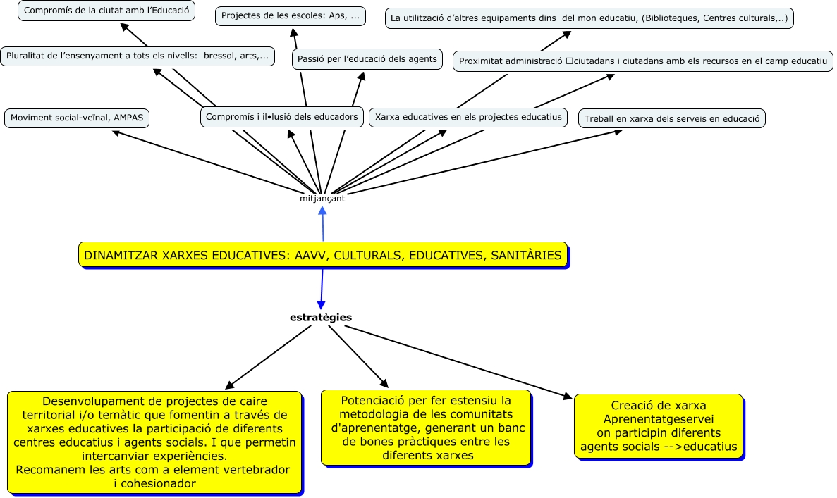 Este Cmap, tiene información relacionada con: propostes finals3, DINAMITZAR XARXES EDUCATIVES: AAVV, CULTURALS, EDUCATIVES, SANITÀRIES mitjançant Treball en xarxa dels serveis en educació, DINAMITZAR XARXES EDUCATIVES: AAVV, CULTURALS, EDUCATIVES, SANITÀRIES mitjançant Compromís de la ciutat amb l’Educació, DINAMITZAR XARXES EDUCATIVES: AAVV, CULTURALS, EDUCATIVES, SANITÀRIES mitjançant Xarxa educatives en els projectes educatius, DINAMITZAR XARXES EDUCATIVES: AAVV, CULTURALS, EDUCATIVES, SANITÀRIES mitjançant Moviment social-veïnal, AMPAS, DINAMITZAR XARXES EDUCATIVES: AAVV, CULTURALS, EDUCATIVES, SANITÀRIES mitjançant Pluralitat de l’ensenyament a tots els nivells: bressol, arts,..., DINAMITZAR XARXES EDUCATIVES: AAVV, CULTURALS, EDUCATIVES, SANITÀRIES estratègies Desenvolupament de projectes de caire territorial i/o temàtic que fomentin a través de xarxes educatives la participació de diferents centres educatius i agents socials. I que permetin intercanviar experiències. Recomanem les arts com a element vertebrador i cohesionador, DINAMITZAR XARXES EDUCATIVES: AAVV, CULTURALS, EDUCATIVES, SANITÀRIES mitjançant Projectes de les escoles: Aps, ..., DINAMITZAR XARXES EDUCATIVES: AAVV, CULTURALS, EDUCATIVES, SANITÀRIES mitjançant Proximitat administració ciutadans i ciutadans amb els recursos en el camp educatiu, DINAMITZAR XARXES EDUCATIVES: AAVV, CULTURALS, EDUCATIVES, SANITÀRIES estratègies Creació de xarxa Aprenentatgeservei on participin diferents agents socials -->educatius, DINAMITZAR XARXES EDUCATIVES: AAVV, CULTURALS, EDUCATIVES, SANITÀRIES mitjançant La utilització d’altres equipaments dins del mon educatiu, (Biblioteques, Centres culturals,..), DINAMITZAR XARXES EDUCATIVES: AAVV, CULTURALS, EDUCATIVES, SANITÀRIES mitjançant Passió per l’educació dels agents, DINAMITZAR XARXES EDUCATIVES: AAVV, CULTURALS, EDUCATIVES, SANITÀRIES mitjançant Compromís i il•lusió dels educadors, DINAMITZAR XARXES EDUCATIVES: AAVV, CULTURALS, EDUCATIVES, SANITÀRIES estratègies Potenciació per fer estensiu la metodologia de les comunitats d'aprenentatge, generant un banc de bones pràctiques entre les diferents xarxes