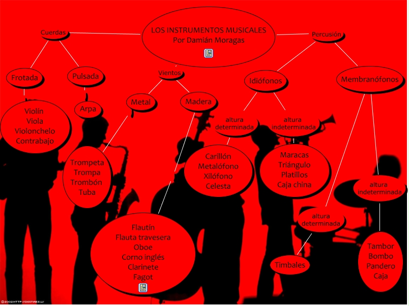 Este Cmap, tiene información relacionada con: Instrumentos Musicales, Metal Trompeta Trompa Trombón Tuba, Membranófonos altura indeterminada Tambor Bombo Pandero Caja, Membranófonos altura determinada Timbales, LOS INSTRUMENTOS MUSICALES Por Damián Moragas Vientos Madera, Idiófonos altura indeterminada Maracas Triángulo Platillos Caja china, Frotada Violín Viola Violonchelo Contrabajo, LOS INSTRUMENTOS MUSICALES Por Damián Moragas Percusión Membranófonos, Idiófonos altura determinada Carillón Metalófono Xilófono Celesta, LOS INSTRUMENTOS MUSICALES Por Damián Moragas Cuerdas Frotada, Madera Flautín Flauta travesera Oboe Corno inglés Clarinete Fagot, LOS INSTRUMENTOS MUSICALES Por Damián Moragas Vientos Metal, LOS INSTRUMENTOS MUSICALES Por Damián Moragas Percusión Idiófonos, LOS INSTRUMENTOS MUSICALES Por Damián Moragas Cuerdas Pulsada, Pulsada Arpa