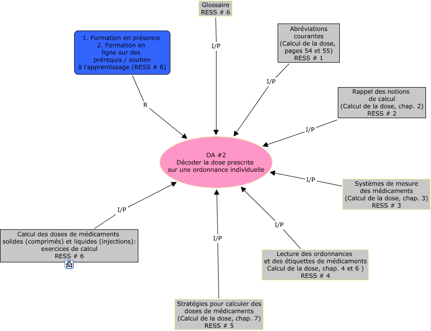 Cette carte de concepts créée avec IHMC CmapTools traite de: OA_2, Glossaire RESS # 6 I/P OA #2 Décoder la dose prescrite sur une ordonnance individuelle