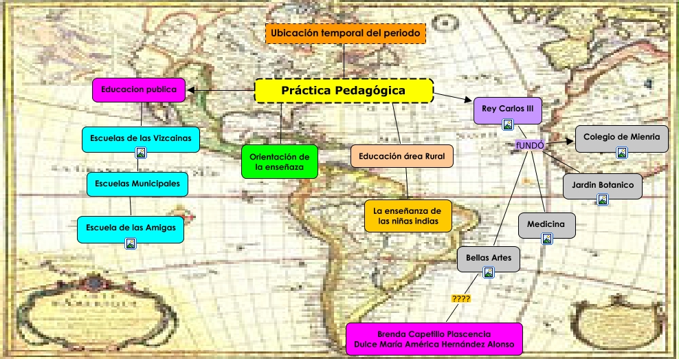 Este Cmap, tiene información relacionada con: HADMA-I-01, Rey Carlos III fUNDÓ Medicina, Escuelas de las Vizcainas ???? Escuelas Municipales, Escuelas Municipales ???? Escuela de las Amigas, Bellas Artes ???? Brenda Capetillo Plascencia Dulce María América Hernández Alonso, Práctica Pedagógica ???? Educacion publica, Práctica Pedagógica ???? Educación área Rural, Educacion publica ???? Escuelas de las Vizcainas, Educación área Rural ???? La enseñanza de las niñas indias, Práctica Pedagógica ???? Rey Carlos III, Ubicación temporal del periodo ???? Práctica Pedagógica, Rey Carlos III fUNDÓ Jardin Botanico, Práctica Pedagógica ???? Orientación de la enseñaza, Rey Carlos III fUNDÓ Colegio de Mienria, Rey Carlos III fUNDÓ Bellas Artes