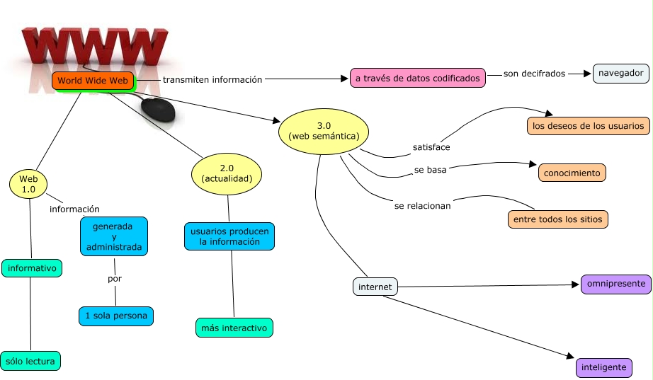 Este Cmap, tiene información relacionada con: cecilia mayer, usuarios producen la información ???? más interactivo, generada y administrada por 1 sola persona, 3.0 (web semántica) se relacionan entre todos los sitios, World Wide Web ???? 3.0 (web semántica), World Wide Web transmiten información a través de datos codificados, 3.0 (web semántica) satisface los deseos de los usuarios, Web 1.0 información generada y administrada, internet ???? inteligente, World Wide Web ???? 2.0 (actualidad), a través de datos codificados son decifrados navegador, Web 1.0 ???? informativo, 3.0 (web semántica) ???? internet, internet ???? omnipresente, World Wide Web ???? Web 1.0, 2.0 (actualidad) ???? usuarios producen la información, 3.0 (web semántica) se basa conocimiento, informativo ???? sólo lectura