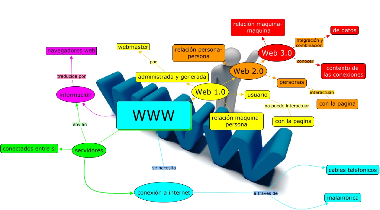 Este Cmap, tiene información relacionada con: Ivan Wisner Dome, Web 2.0 ???? relación persona- persona, conexión a internet a traves de cables telefonicos, información traducida por navegadores web, servidores ???? conectados entre si, Web 1.0 ???? administrada y generada, Web 3.0 conocer contexto de las conexiones, Web 1.0 ???? relación maquina- persona, conexión a internet a traves de inalambrica, Web 2.0 ???? personas, WWW se necesita conexión a internet, personas interactuan con la pagina, WWW ???? servidores, Web 2.0 ???? Web 3.0, WWW ???? Web 1.0, servidores ???? conexión a internet, administrada y generada por webmaster, Web 3.0 ???? relación maquina- maquina, WWW ???? información, usuario no puede interactuar con la pagina, Web 1.0 ???? Web 2.0