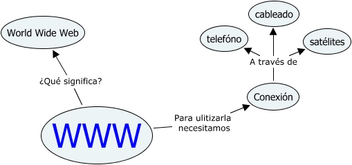 Este Cmap, tiene información relacionada con: Joaquina, Conexión A través de satélites, Conexión A través de telefóno, WWW ¿Qué significa? World Wide Web, Conexión A través de cableado, WWW Para ulitizarla necesitamos Conexión