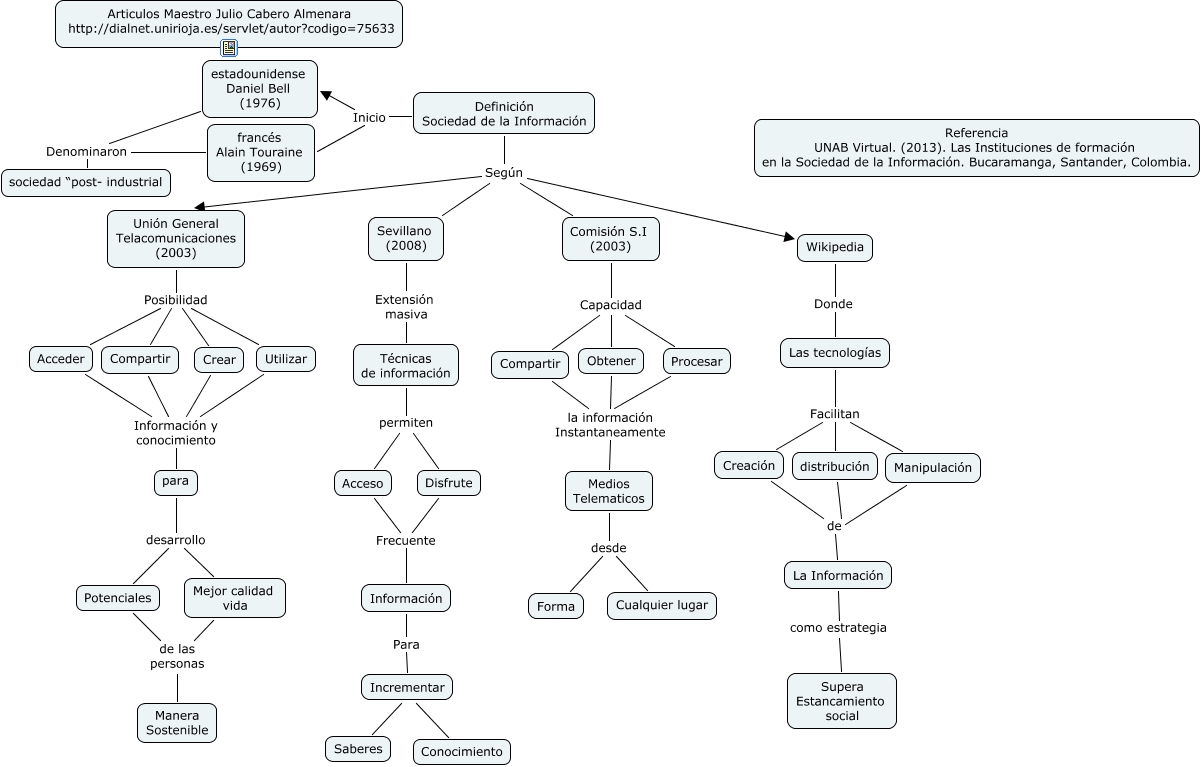 Este Cmap, tiene información relacionada con: Definición Sociedad Información, Potenciales de las personas Manera Sostenible, Información Para Incrementar, Procesar la información Instantaneamente Medios Telematicos, Definición Sociedad de la Información Inicio estadounidense Daniel Bell (1976), Definición Sociedad de la Información Según Sevillano (2008), para desarrollo Potenciales, Mejor calidad vida de las personas Manera Sostenible, para desarrollo Mejor calidad vida, Las tecnologías Facilitan distribución, Creación de La Información, Acceder Información y conocimiento para, Comisión S.I (2003) Capacidad Procesar, Compartir Información y conocimiento para, Sevillano (2008) Extensión masiva Técnicas de información, Definición Sociedad de la Información Según Wikipedia, Crear Información y conocimiento para, Incrementar ???? Saberes, Definición Sociedad de la Información Inicio francés Alain Touraine (1969), Acceso Frecuente Información, Unión General Telacomunicaciones (2003) Posibilidad Acceder