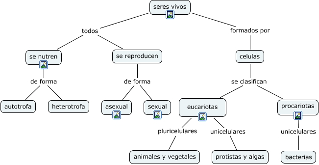 Este Cmap, tiene información relacionada con: seres vivos.cmap, eucariotas unicelulares protistas y algas, se nutren de forma heterotrofa, se reproducen de forma sexual, eucariotas pluricelulares animales y vegetales, celulas se clasifican procariotas, se reproducen de forma asexual, seres vivos formados por celulas, procariotas unicelulares bacterias, celulas se clasifican eucariotas, seres vivos todos se nutren, seres vivos todos se reproducen, se nutren de forma autotrofa