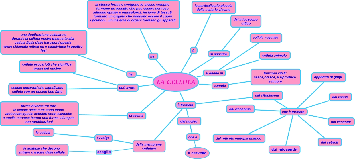 Questa Cmap, creata con IHMC CmapTools, contiene informazioni relative a: La cellula, dal citoplasma che è formato apparato di golgi, LA CELLULA può avere cellule procarioti che significa prima del nucleo, LA CELLULA è formata dal nucleo, dal citoplasma che è formato dai miocondri, dal citoplasma che è formato dal ribosoma, LA CELLULA è formata dalla membrana cellulare, LA CELLULA si osserva dal micoscopo ottico, LA CELLULA è la particella più piccola della materia vivente, LA CELLULA si divide in cellula animale, dal nucleo che è il cervello, LA CELLULA si divide in cellula vegetale, dal citoplasma che è formato dal reticolo endoplasmatico, LA CELLULA ha una duplicazione cellulare e durante la cellula madre trasmette alla cellula figlia delle istruzioni questa viene chiamata mitosi ed è suddiviusa in quattro fasi, dal citoplasma che è formato dai vaculi, LA CELLULA presenta forme diverse tra loro: le cellule della cute sono molto addensate,quelle cellulari sono elastiche e quelle nervose hanno una forma allungata con ramificazioni, dal citoplasma che è formato dai cetrioli, LA CELLULA ha la stessa forma e svolgono lo stesso compito formano un tessuto che può essere nervoso, adiposo epitale e muscolare.L'insieme di tessuti formano un organo che possono essere il cuore i polmoni...un insieme di organi formano gli apparati, LA CELLULA è formata dal citoplasma, dalla membrana cellulare sceglie le sostaze che devono entrare o uscire dalla cellula, dal citoplasma che è formato dai lisosomi