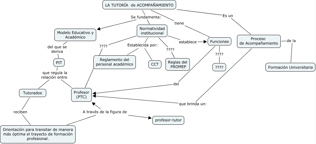Este Cmap, tiene información relacionada con: La Tutoría en la UACA de la UAGro, Tutorados reciben Orientación para transitar de manera más óptima el trayecto de formación profesional., LA TUTORÍA de ACOMPAÑAMIENTO Se fundamenta: Normatividad institucional, Normatividad institucional ???? Reglas del PROMEP, Modelo Educativo y Académico del que se deriva PIT, Funciones ???? ????, Orientación para transitar de manera más óptima el trayecto de formación profesional. A través de la figura de Profesor (PTC), Normatividad institucional Establecida por: CCT, PIT que regula la relación entre Profesor (PTC), PIT que regula la relación entre Tutorados, Orientación para transitar de manera más óptima el trayecto de formación profesional. A través de la figura de profesor-tutor, Normatividad institucional establece Funciones, Normatividad institucional ???? Profesor (PTC), Funciones del Profesor (PTC), LA TUTORÍA de ACOMPAÑAMIENTO tiene Funciones, Proceso de Acompañamiento que brinda un: Profesor (PTC), LA TUTORÍA de ACOMPAÑAMIENTO Se fundamenta: Modelo Educativo y Académico, LA TUTORÍA de ACOMPAÑAMIENTO Es un Proceso de Acompañamiento, Proceso de Acompañamiento de la Formación Universitaria, Normatividad institucional Establecida por: Reglamento del personal académico