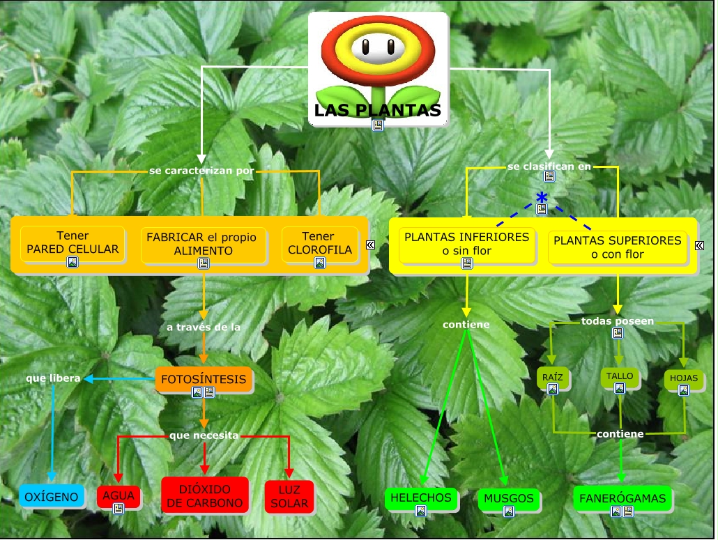 Aquest mapa conceptual conté informació relacionada amb: LAS PLANTAS. CMap. Webquest. ISL, LAS PLANTAS se caracterizan por Tener PARED CELULAR, PLANTAS SUPERIORES o con flor todas poseen TALLO, LAS PLANTAS se caracterizan por FABRICAR el propio ALIMENTO, FOTOSÍNTESIS que necesita LUZ SOLAR, RAÍZ contiene FANERÓGAMAS, FABRICAR el propio ALIMENTO a través de la FOTOSÍNTESIS, FOTOSÍNTESIS que libera OXÍGENO, LAS PLANTAS se clasifican en PLANTAS SUPERIORES o con flor, PLANTAS SUPERIORES o con flor * PLANTAS INFERIORES o sin flor, RAÍZ contiene TALLO, RAÍZ contiene HOJAS, PLANTAS INFERIORES o sin flor contiene HELECHOS, PLANTAS INFERIORES o sin flor contiene MUSGOS, LAS PLANTAS se clasifican en PLANTAS INFERIORES o sin flor, LAS PLANTAS se caracterizan por Tener CLOROFILA, PLANTAS SUPERIORES o con flor todas poseen HOJAS, PLANTAS SUPERIORES o con flor todas poseen RAÍZ, FOTOSÍNTESIS que necesita DIÓXIDO DE CARBONO, FOTOSÍNTESIS que necesita AGUA