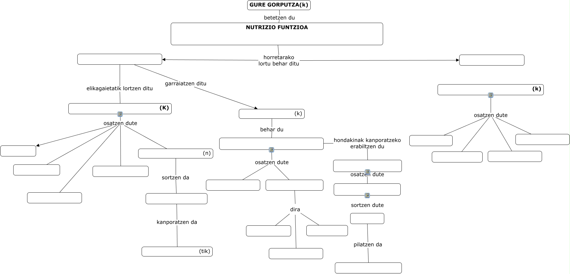 Este Cmap, tiene información relacionada con: Gure gorputza (Nutrizioa) hutsik, (k) osatzen dute, sortzen dute, (k) behar du, NUTRIZIO FUNTZIOA horretarako lortu behar ditu, dira, (k) osatzen dute, kanporatzen da (tik), (k) osatzen dute, dira, hondakinak kanporatzeko erabiltzen du, osatzen dute, garraiatzen ditu (k), (K) osatzen dute, (n) sortzen da, elikagaietatik lortzen ditu (K), osatzen dute, (K) osatzen dute, osatzen dute, dira, pilatzen da