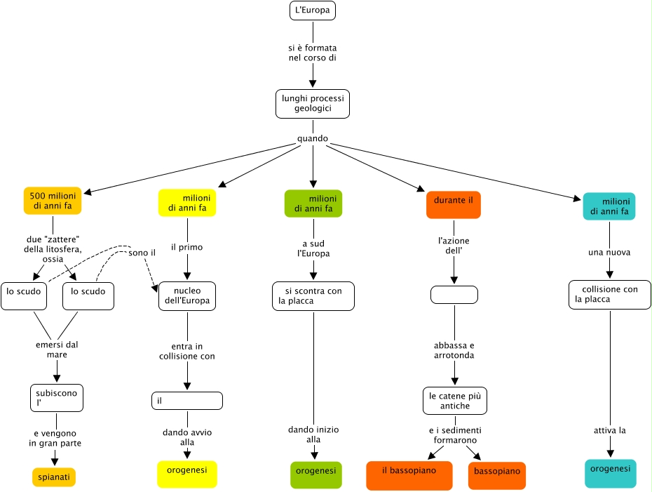 Questa Cmap, creata con IHMC CmapTools, contiene informazioni relative a: Geologia - La nascita dell'Europa - schema da completare, il Nordamerica dando avvio alla orogenesi caledoniana, si scontra con la placca africana dando inizio alla orogenesi ercinica, lo scudo Baltico sono il nucleo dell'Europa, 300 milioni di anni fa a sud l'Europa si scontra con la placca africana, le catene più antiche e i sedimenti formarono bassopiano Sarmatico, subiscono l'erosione e vengono in gran parte spianati, 500 milioni di anni fa due "zattere" della litosfera, ossia lo scudo Baltico, lunghi processi geologici quando 300 milioni di anni fa, lunghi processi geologici quando 500 milioni di anni fa, nucleo dell'Europa entra in collisione con il Nordamerica, erosione abbassa e arrotonda le catene più antiche, L'Europa si è formata nel corso di lunghi processi geologici, lo scudo Sarmatico sono il nucleo dell'Europa, 500 milioni di anni fa due "zattere" della litosfera, ossia lo scudo Sarmatico, lunghi processi geologici quando 65 milioni di anni fa, lunghi processi geologici quando 400 milioni di anni fa, le catene più antiche e i sedimenti formarono il bassopiano Franco-germanico, collisione con la placca africana attiva la orogenesi alpina, lo scudo Baltico emersi dal mare subiscono l'erosione, 65 milioni di anni fa una nuova collisione con la placca africana