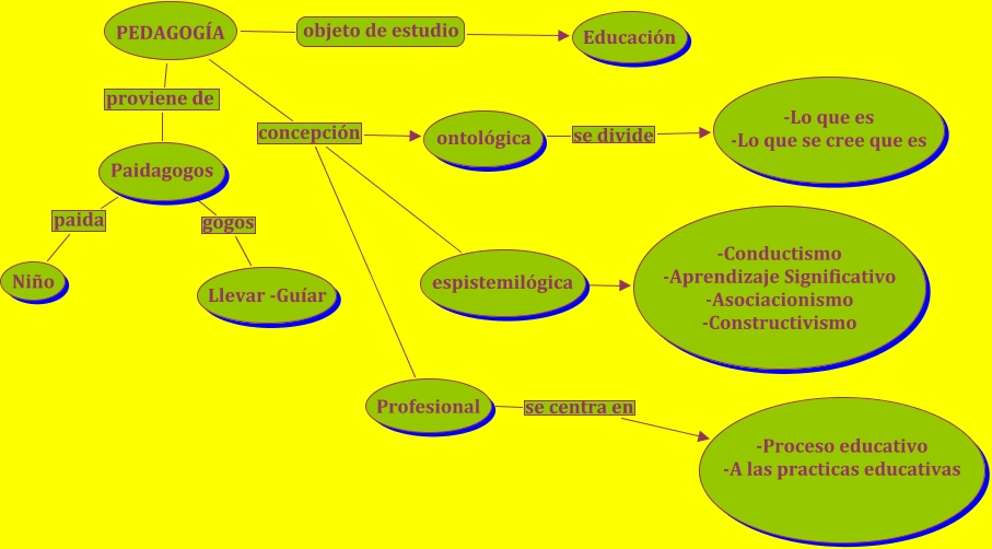 Este Cmap, tiene información relacionada con: Planos d ela pedagogía, espistemilógica ???? -Conductismo -Aprendizaje Significativo -Asociacionismo -Constructivismo, PEDAGOGÍA proviene de Paidagogos, Paidagogos gogos Llevar -Guíar, PEDAGOGÍA concepción espistemilógica, PEDAGOGÍA concepción Profesional, Paidagogos paida Niño, PEDAGOGÍA objeto de estudio Educación, ontológica se divide -Lo que es -Lo que se cree que es, Profesional se centra en -Proceso educativo -A las practicas educativas, PEDAGOGÍA concepción ontológica