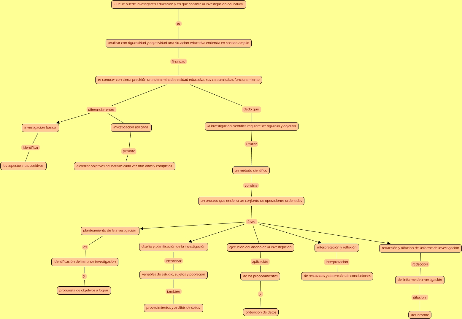 Este Cmap, tiene información relacionada con: que se puede investigaren educacion e investigacion educativa, variables de estudio, sujetos y población también procedimientos y análisis de datos, un proceso que encierra un conjunto de operaciones ordenadas fases diseño y planificación de la investigación, es conocer con cierta precisión una determinada realidad educativa, sus características funcionamiento diferenciar entre investigación básica, analizar con rigurosidad y objetividad una situación educativa entienda en sentido amplio finalidad es conocer con cierta precisión una determinada realidad educativa, sus características funcionamiento, un proceso que encierra un conjunto de operaciones ordenadas fases redacción y difucion del informe de investigación, investigación aplicada permite alcanzar objetivos educativos cada vez mas altos y complejos, interpretación y reflexión interpretación de resultados y obtención de conclusiones, investigación básica identificar los aspectos mas positivos, planteamiento de la investigación es identificación del tema de investigación, un proceso que encierra un conjunto de operaciones ordenadas fases planteamiento de la investigación, es conocer con cierta precisión una determinada realidad educativa, sus características funcionamiento diferenciar entre investigación aplicada, diseño y planificación de la investigación identificar variables de estudio, sujetos y población, un proceso que encierra un conjunto de operaciones ordenadas fases interpretación y reflexión, de los procedimientos y obtención de datos, redacción y difucion del informe de investigación redacción del informe de investigación, ejecución del diseño de la investigación aplicación de los procedimientos, del informe de investigación difucion del informe, Que se puede investigaren Educación y en qué consiste la investigación educativa es analizar con rigurosidad y objetividad una situación educativa entienda en sentido amplio, un método científico consiste un proceso que encierra un conjunto de operaciones ordenadas, la investigación científica requiere ser rigurosa y objetiva utilizar un método científico