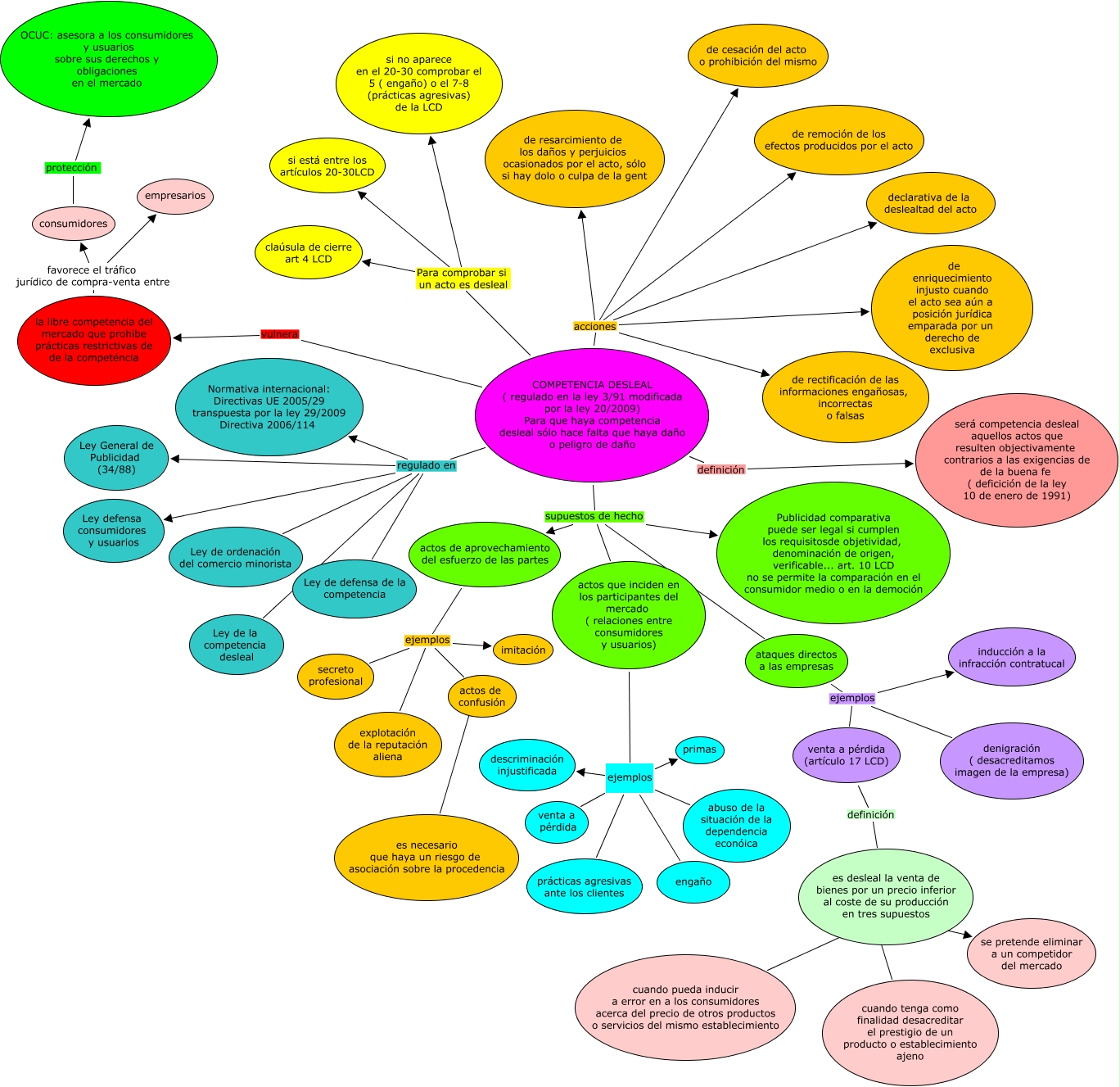 Este Cmap, tiene información relacionada con: escenari 2 (laura), ataques directos a las empresas ejemplos inducción a la infracción contratucal, COMPETENCIA DESLEAL ( regulado en la ley 3/91 modificada por la ley 20/2009) Para que haya competencia desleal sólo hace falta que haya daño o peligro de daño regulado en Ley defensa consumidores y usuarios, COMPETENCIA DESLEAL ( regulado en la ley 3/91 modificada por la ley 20/2009) Para que haya competencia desleal sólo hace falta que haya daño o peligro de daño Para comprobar si un acto es desleal claúsula de cierre art 4 LCD, actos que inciden en los participantes del mercado ( relaciones entre consumidores y usuarios) ejemplos engaño, COMPETENCIA DESLEAL ( regulado en la ley 3/91 modificada por la ley 20/2009) Para que haya competencia desleal sólo hace falta que haya daño o peligro de daño regulado en Ley de defensa de la competencia, actos de aprovechamiento del esfuerzo de las partes ejemplos explotación de la reputación aliena, COMPETENCIA DESLEAL ( regulado en la ley 3/91 modificada por la ley 20/2009) Para que haya competencia desleal sólo hace falta que haya daño o peligro de daño supuestos de hecho ataques directos a las empresas, es desleal la venta de bienes por un precio inferior al coste de su producción en tres supuestos ???? cuando pueda inducir a error en a los consumidores acerca del precio de otros productos o servicios del mismo establecimiento, COMPETENCIA DESLEAL ( regulado en la ley 3/91 modificada por la ley 20/2009) Para que haya competencia desleal sólo hace falta que haya daño o peligro de daño supuestos de hecho Publicidad comparativa puede ser legal si cumplen los requisitosde objetividad, denominación de origen, verificable... art. 10 LCD no se permite la comparación en el consumidor medio o en la democión, actos de confusión es necesario que haya un riesgo de asociación sobre la procedencia, COMPETENCIA DESLEAL ( regulado en la ley 3/91 modificada por la ley 20/2009) Para que haya competencia desleal sólo hace falta que haya daño o peligro de daño acciones de cesación del acto o prohibición del mismo, ataques directos a las empresas ejemplos denigración ( desacreditamos imagen de la empresa), actos que inciden en los participantes del mercado ( relaciones entre consumidores y usuarios) ejemplos primas, COMPETENCIA DESLEAL ( regulado en la ley 3/91 modificada por la ley 20/2009) Para que haya competencia desleal sólo hace falta que haya daño o peligro de daño vulnera la libre competencia del mercado que prohibe prácticas restrictivas de de la competéncia, COMPETENCIA DESLEAL ( regulado en la ley 3/91 modificada por la ley 20/2009) Para que haya competencia desleal sólo hace falta que haya daño o peligro de daño regulado en Ley de la competencia desleal, COMPETENCIA DESLEAL ( regulado en la ley 3/91 modificada por la ley 20/2009) Para que haya competencia desleal sólo hace falta que haya daño o peligro de daño acciones de resarcimiento de los daños y perjuicios ocasionados por el acto, sólo si hay dolo o culpa de la gent, actos que inciden en los participantes del mercado ( relaciones entre consumidores y usuarios) ejemplos descriminación injustificada, COMPETENCIA DESLEAL ( regulado en la ley 3/91 modificada por la ley 20/2009) Para que haya competencia desleal sólo hace falta que haya daño o peligro de daño regulado en Ley General de Publicidad (34/88), actos que inciden en los participantes del mercado ( relaciones entre consumidores y usuarios) ejemplos abuso de la situación de la dependencia econóica, actos de aprovechamiento del esfuerzo de las partes ejemplos imitación