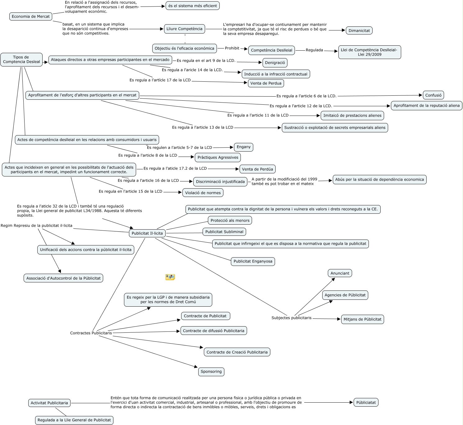 Este Cmap, tiene información relacionada con: Totunclam, Tipos de Comptencia Desleal ???? Actes que incideixen en general en les possibilitats de l'actuació dels participants en el mercat, impedint un funcionament correcte., Actes que incideixen en general en les possibilitats de l'actuació dels participants en el mercat, impedint un funcionament correcte. Es regula a l'aticle 32 de la LCD i també té una regulació propia, la Llei general de publicitat L34/1988. Aquesta té diferents supòsits. Publicitat Il·licita, Publicitat Il·licita Contractes Publicitaris Contracte de Publicitat, Lliure Competència L'empresari ha d'ocupar-se contiunament per mantenir la comptetitivitat, ja que té el risc de perdues o bé que la seva empresa desaparegui. Dimanicitat, Ataques directos a otras empresas participantes en el mercado Es regula a l'aricle 14 de la LCD. Inducció a la infracció contractual, Publicitat Il·licita Subjectes publicitaris Mitjans de Públicitat, Economia de Mercat basat, en un sistema que implica la desaparició continua d'empreses que no són competitives. Lliure Competència, Tipos de Comptencia Desleal ghahg Aprofitament de l'esforç d'altres participants en el mercat, Competència Deslleial Regulada Llei de Competència Deslleial- Llei 29/2009, Activitat Publicitaria ???? Regulada a la Llie General de Publicitat, Publicitat Il·licita Contractes Publicitaris Contracte de Creació Publicitaria, Actes que incideixen en general en les possibilitats de l'actuació dels participants en el mercat, impedint un funcionament correcte. Es regula a l'aticle 17.2 de la LCD Venta de Perdúa, Publicitat Il·licita Contractes Publicitaris Contracte de difussió Publicitaria, Publicitat Il·licita Regim Represiu de la publicitat il·licita Unificació dels accions contra la públicitat il·licita, Publicitat Il·licita Contractes Publicitaris Es regeix per la LGP i de manera subsidiaria per les normes de Dret Comú, Ataques directos a otras empresas participantes en el mercado Es regula a l'artícle 17 de la LCD Venta de Perdua, Aprofitament de l'esforç d'altres participants en el mercat Es regula a l'article 13 de la LCD Sustracció o explotació de secrets empresarials aliens, Publicitat Il·licita ???? Publicitat que infirngeixi el que es disposa a la normativa que regula la publicitat, Aprofitament de l'esforç d'altres participants en el mercat Es regula a l'article 6 de la LCD. Confusió, Activitat Publicitaria Entén que tota forma de comunicació realitzada per una persona fisica o jurídica pública o privada en l'exercici d'uan activitat comercial, industrial, artesanal o professional, amb l'objectiu de promoure de forma directa o indirecta la contractació de bens inmòbles o mòbles, serveis, drets i obligacions es Públiciatat