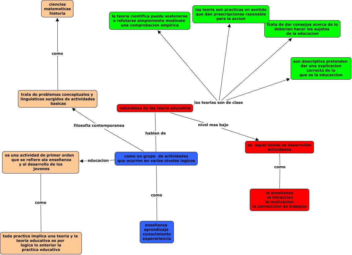 Este Cmap, tiene información relacionada con: naturaleza de las teoria educativa, trata de problemas conceptuales y linguisticos surgidos de actividades basicas como ciencias matematicas historia, como un grupo de actividades que ocurren en varios niveles logicos filosofia contemporanea trata de problemas conceptuales y linguisticos surgidos de actividades basicas, naturaleza de las teoria educativa las teorias son de clase trata de dar consejos acerca de lo deberian hacer los sujetos de la educacion, es aquel donde se dasarrollan actividades como la enseñanza la intruccion la motivacion la correcccion de trabajos, como un grupo de actividades que ocurren en varios niveles logicos educacion es una actividad de primer orden que se refiere ala enseñanza y al desarrollo de los jovenes, naturaleza de las teoria educativa las teorias son de clase las teoris son practicas en sentido que dan prescripciones razonable para la accion, como un grupo de actividades que ocurren en varios niveles logicos como enseñanza aprendizaje conocimiento expereriencia, naturaleza de las teoria educativa hablan de como un grupo de actividades que ocurren en varios niveles logicos, naturaleza de las teoria educativa las teorias son de clase son descriptiva pretenden dar una explicacion correcta de lo que es la educaccion, naturaleza de las teoria educativa las teorias son de clase la teoria cientifica puede sostenerse o refutarse simplemente medinate una comprobacion empirica, es una actividad de primer orden que se refiere ala enseñanza y al desarrollo de los jovenes como toda practica implica una teoria y la teoria educativa es por logica lo anterior la practica educativa, naturaleza de las teoria educativa nivel mas bajo es aquel donde se dasarrollan actividades